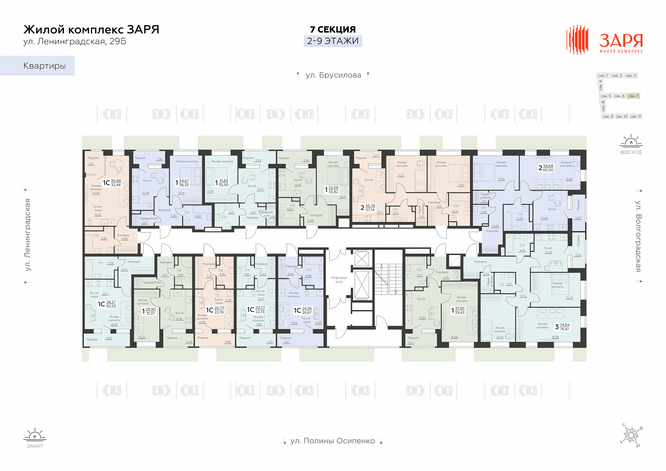 1-комнатная квартира, 33.5 м2, 4 этаж, №584, Заря