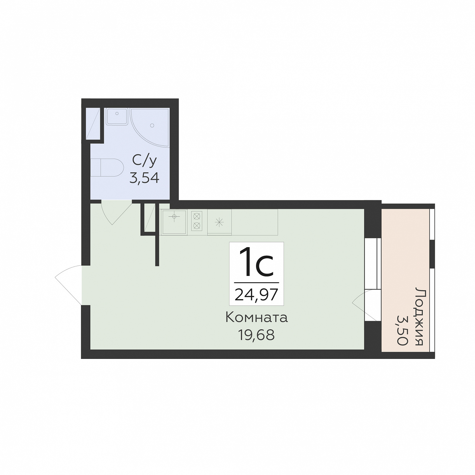 1-комнатная (студия), 24.97 м2, 18 этаж, №346, Квартал 45