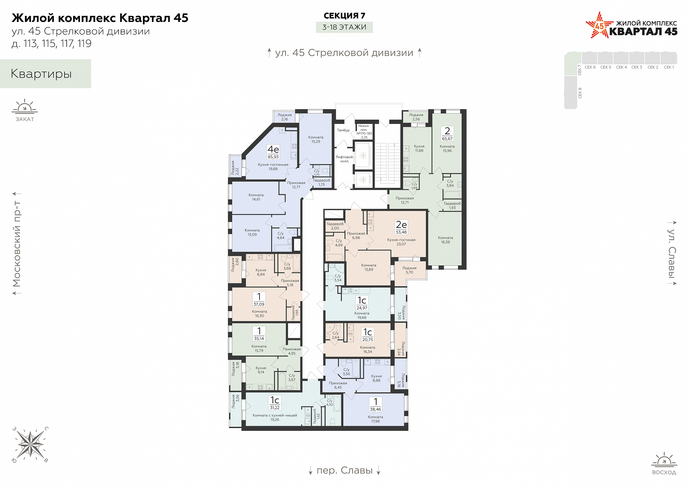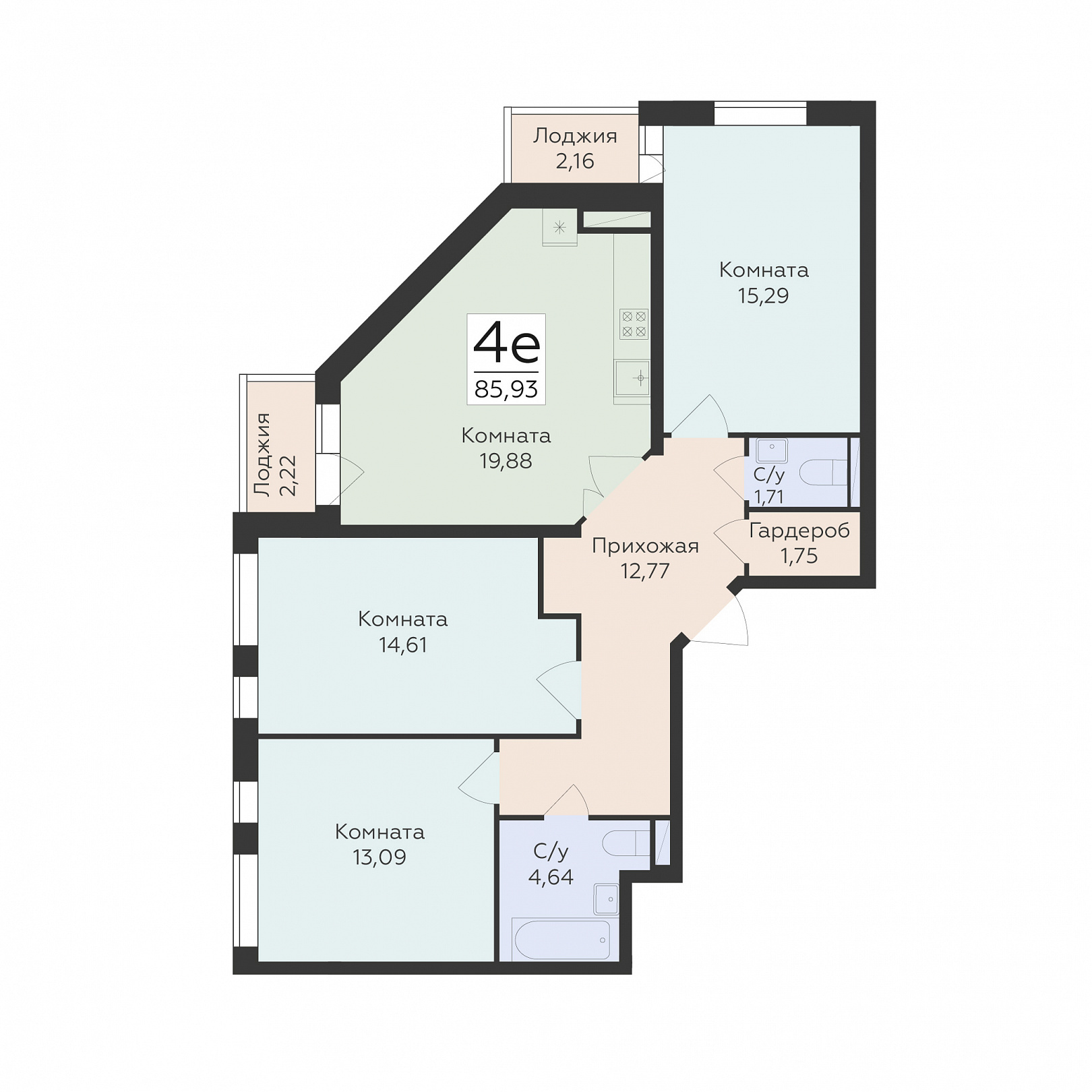 4-ком квартира (Евро), 85.93 м2, 8 этаж, №262, Квартал 45