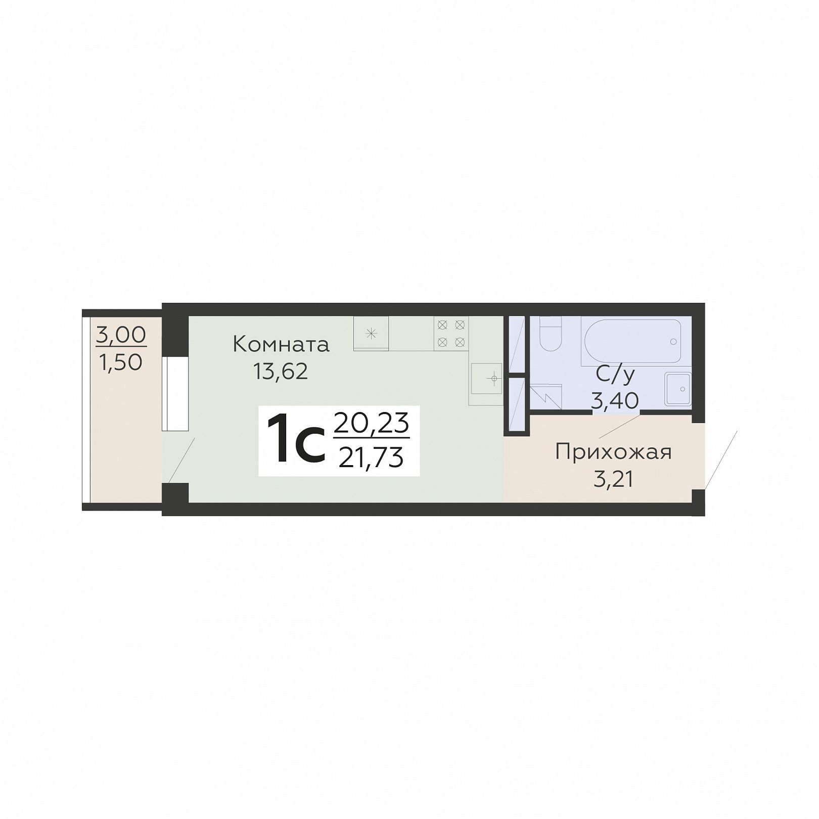 1-комнатная (студия), 21.73 м2, 10 этаж, №963, Никитинские сады
