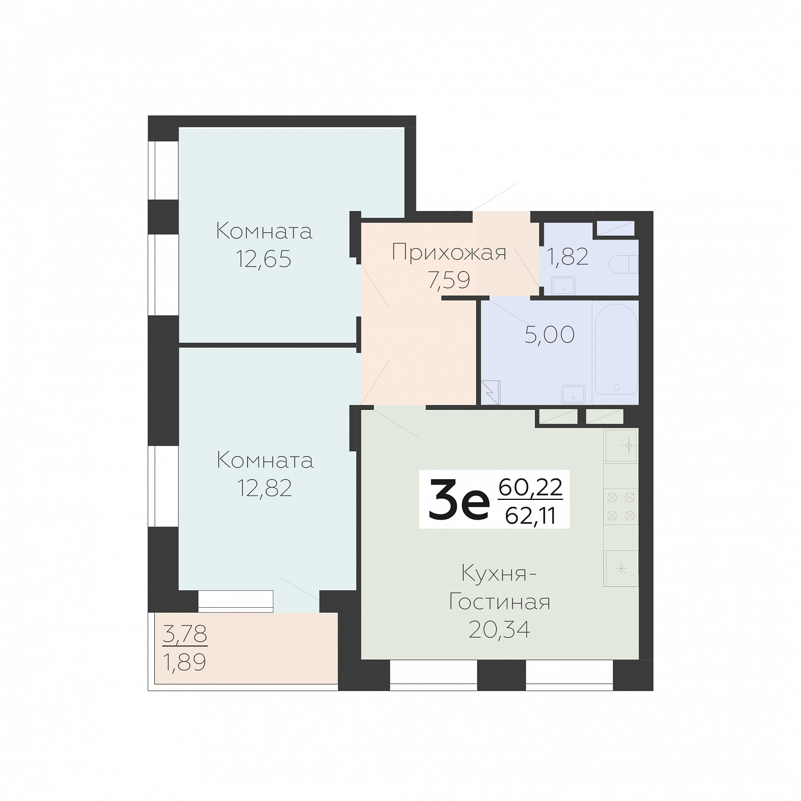 3-ком. квартира (Евро), 62.11 м2, 8 этаж, №796, Зарядье
