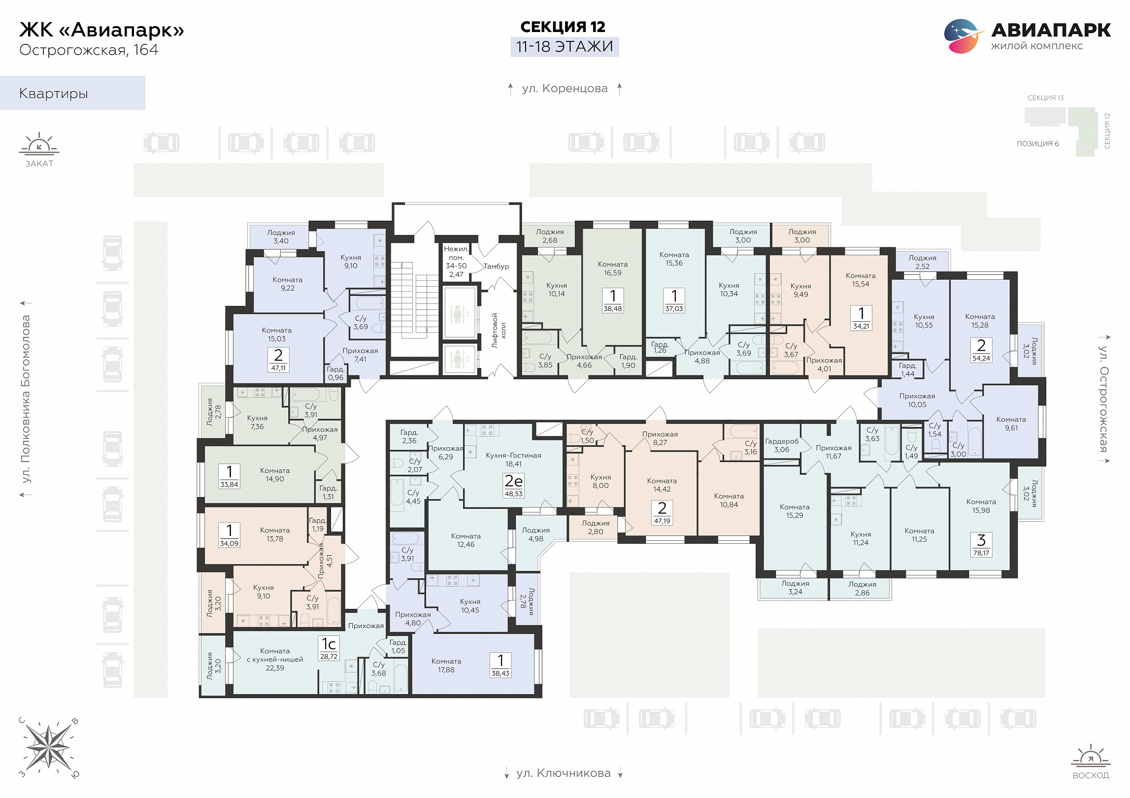 2-ком. квартира (Евро), 48.53 м2, 16 этаж, №184, Авиапарк