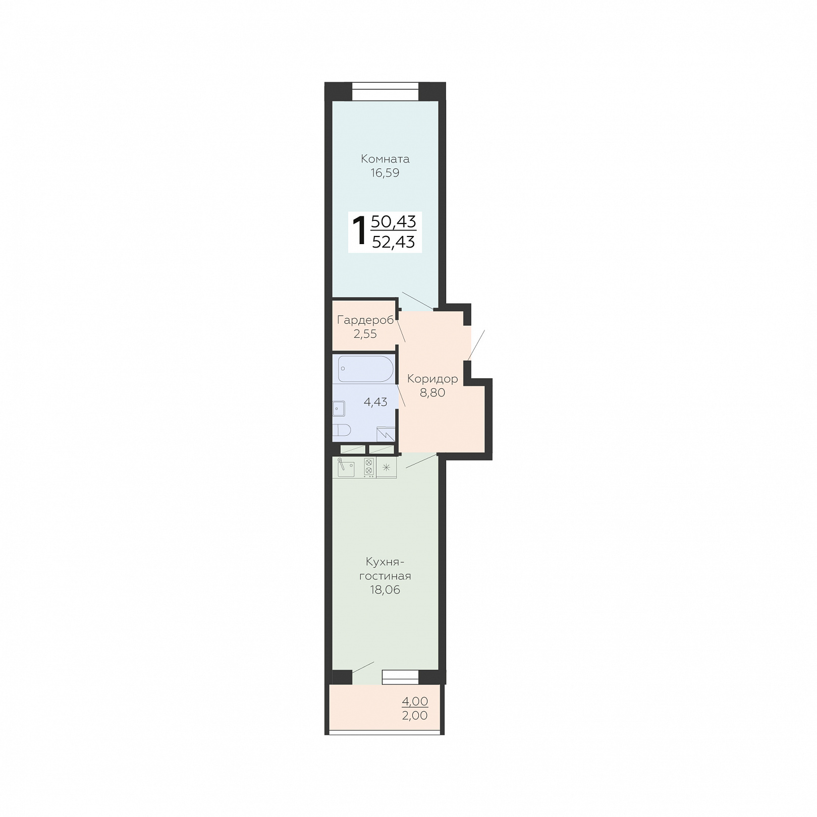 1-комнатная квартира, 52.43 м2, 6 этаж, №266, Зарядье