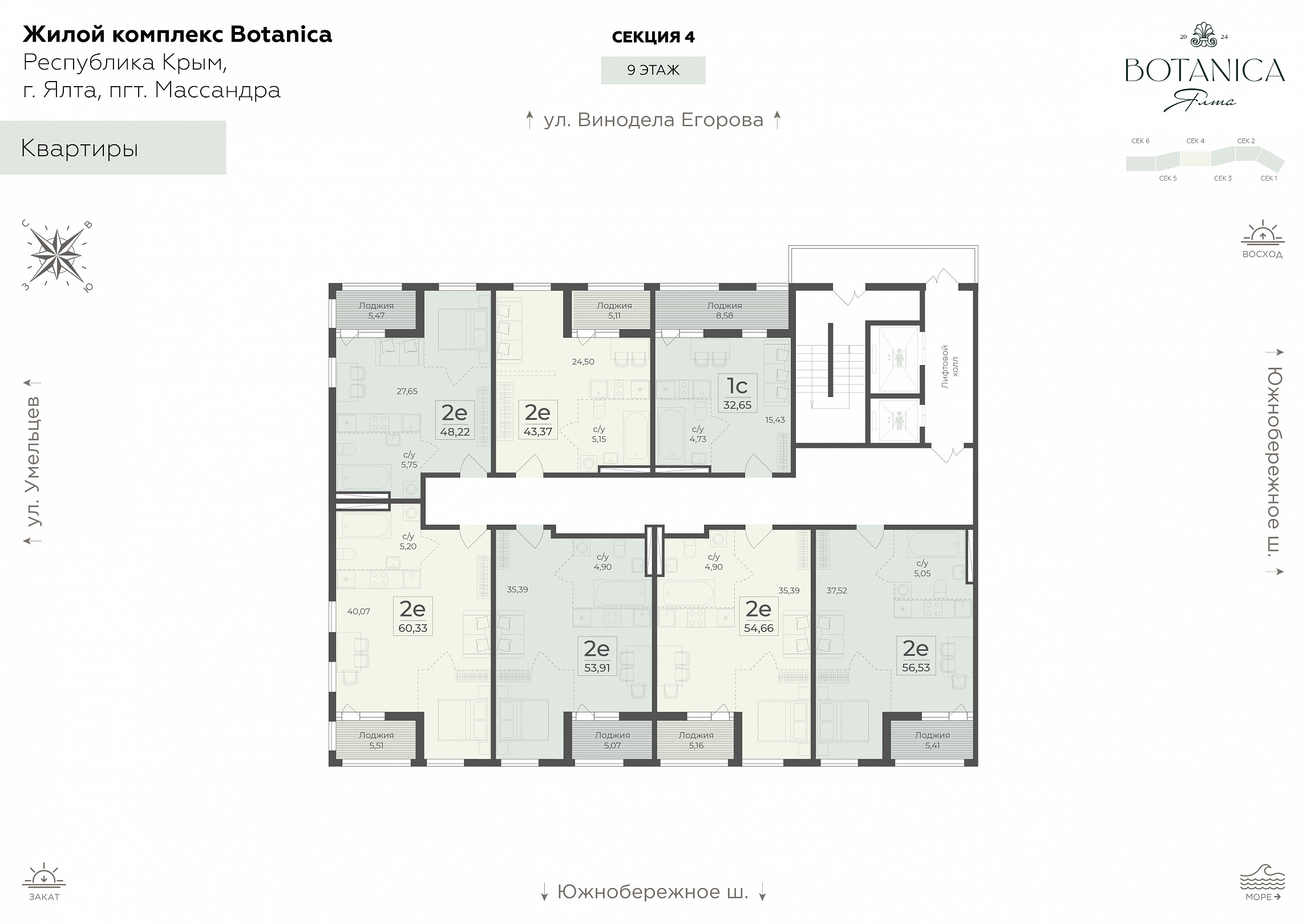 2-ком. квартира (Евро), 43.37 м2, 9 этаж, №315, Botanica