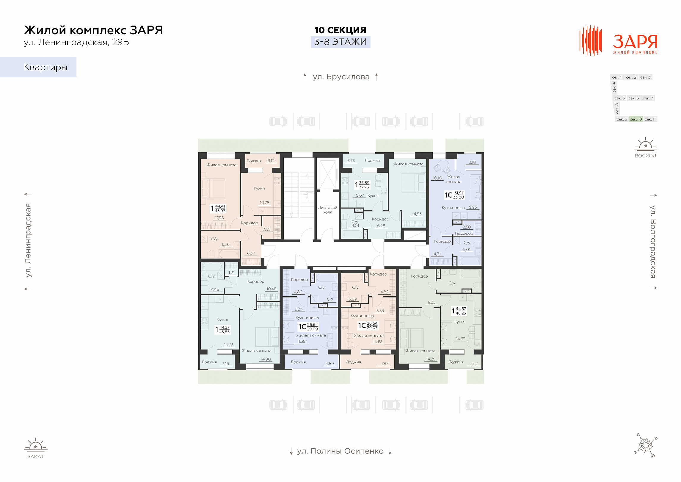 1-комнатная (студия), 29.07 м2, 4 этаж, №927, Заря