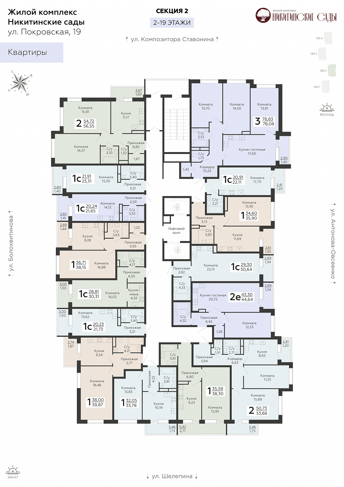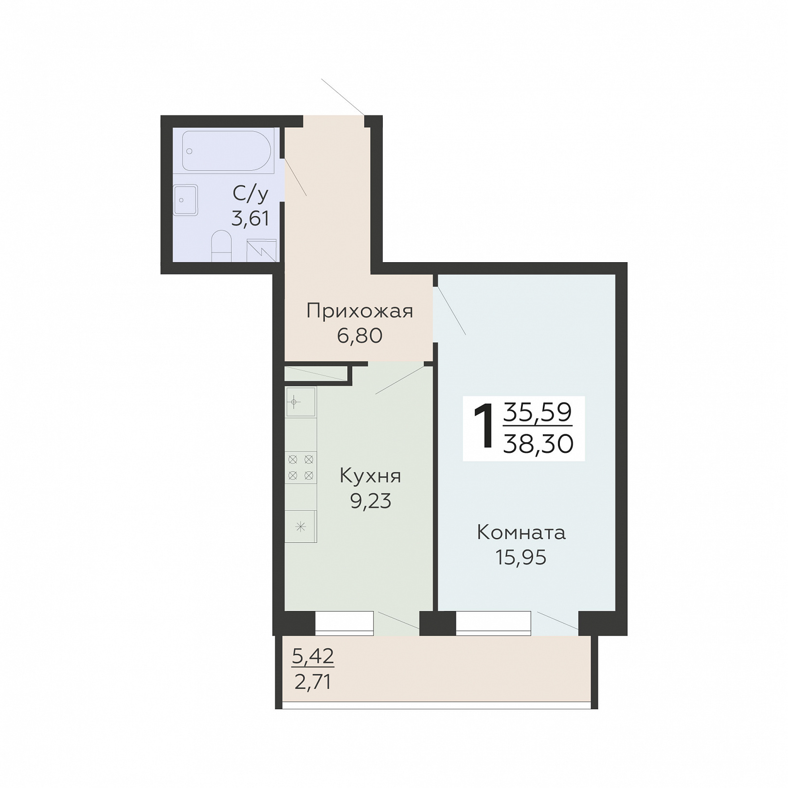 1-комнатная квартира, 38.3 м2, 11 этаж, №426, Никитинские сады