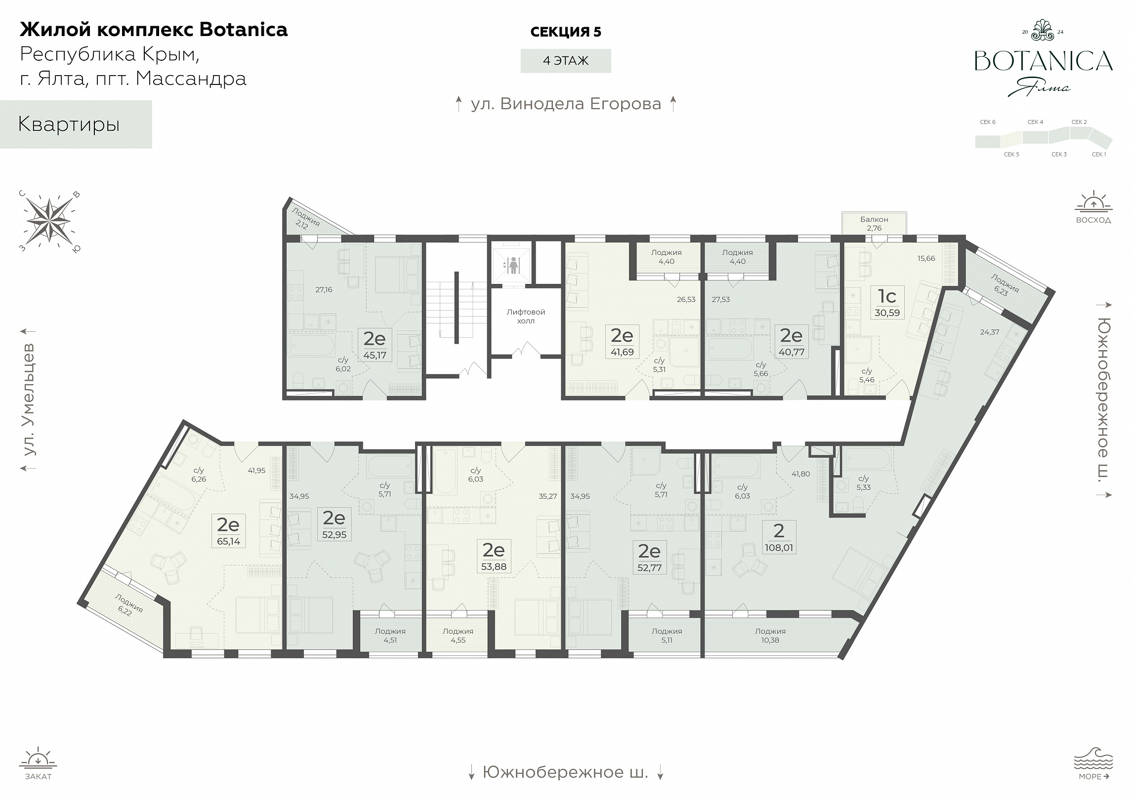 6 (г. Ялта, в районе шоссе Южнобережное) секция, 4 этаж