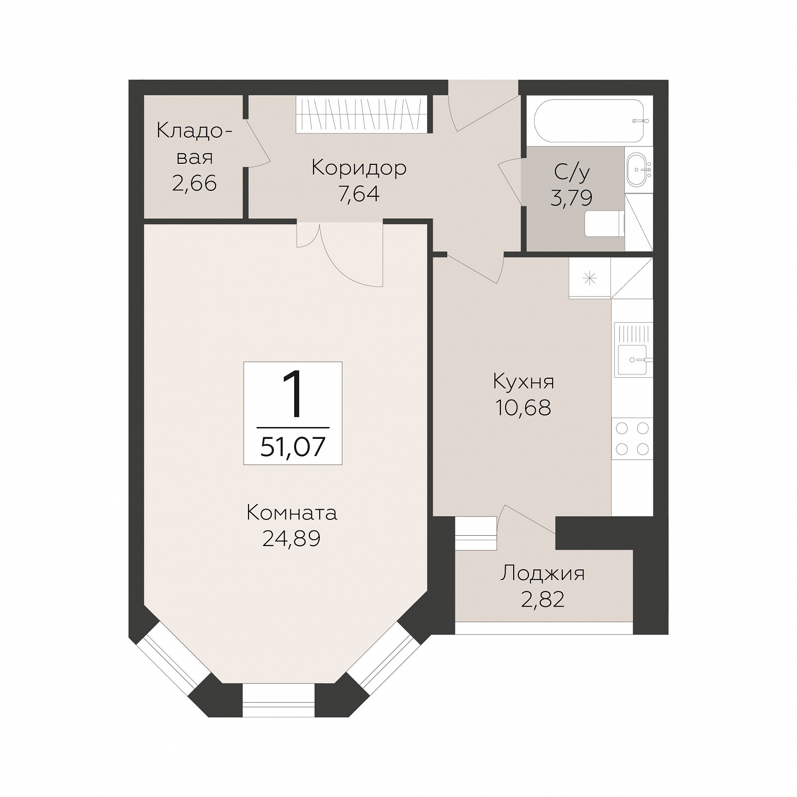 1-комнатная квартира, 51.07 м2, 7 этаж, №299, Пахра Сити
