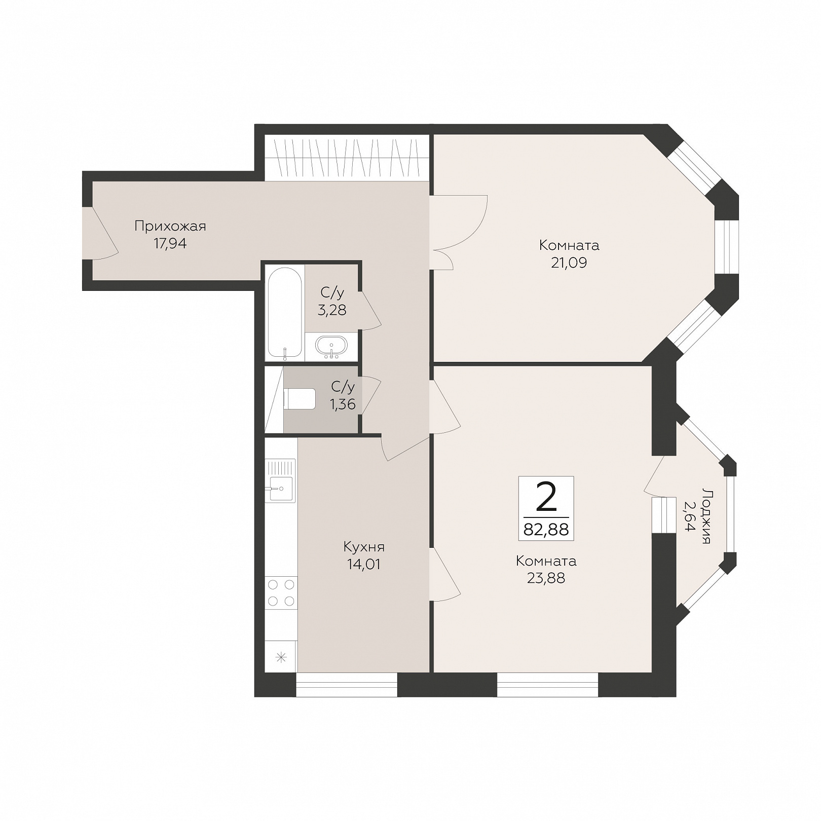 2-комнатная квартира, 82.88 м2, 7 этаж, №32, Пахра Сити