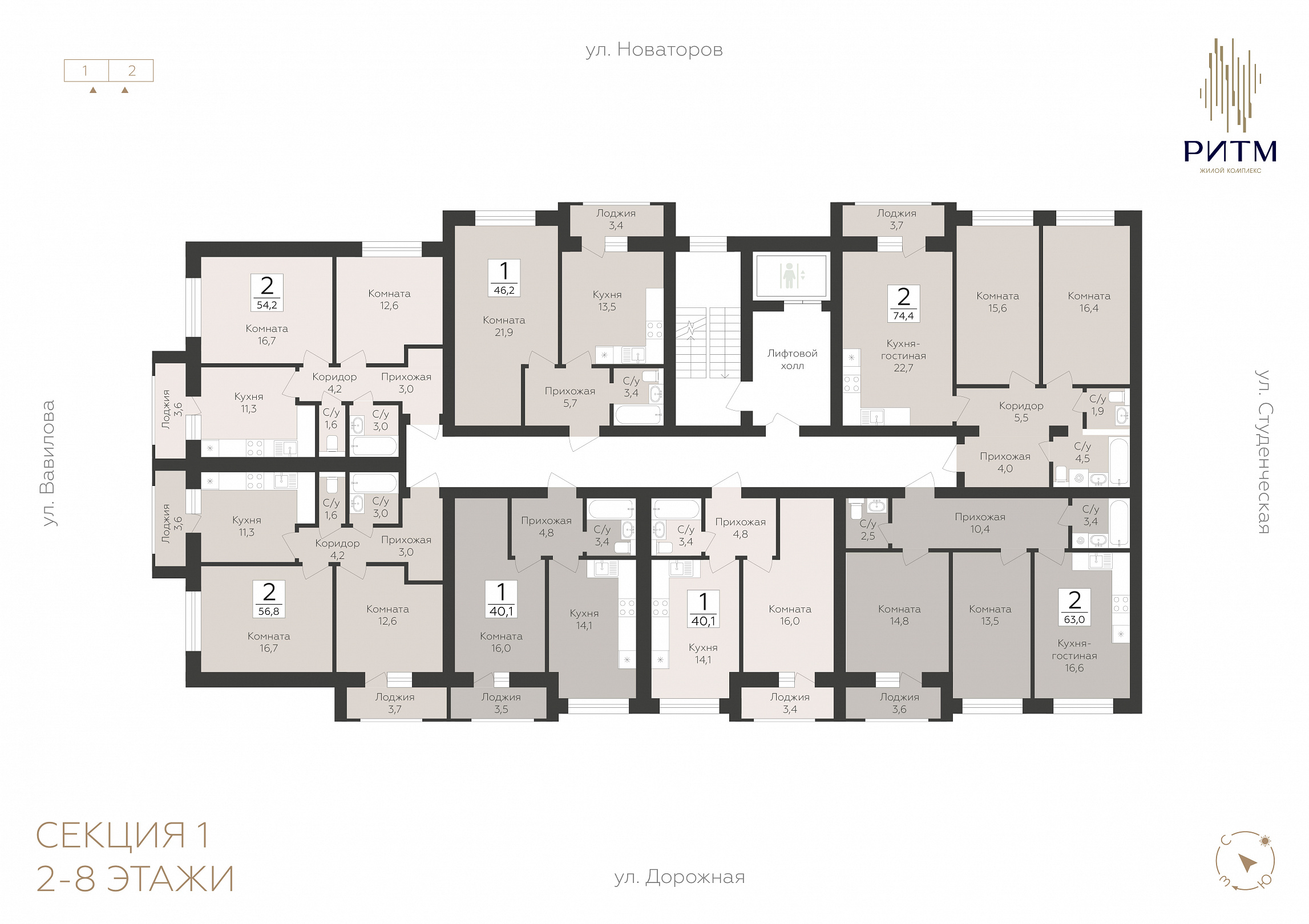 2 (Воронежская область, г. Бутурлиновка, ул. Студенческая, 3) секция, 8 этаж