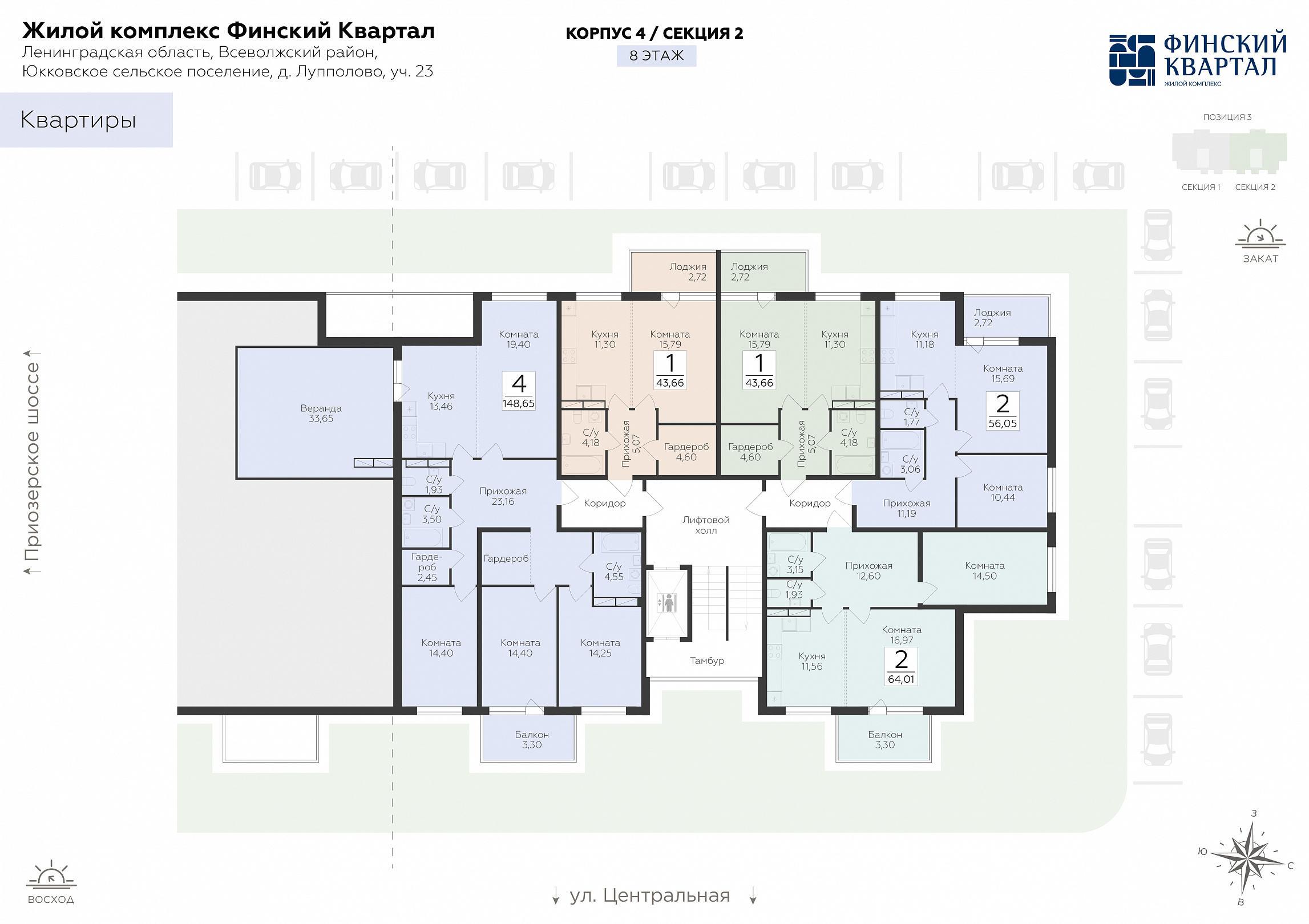 2-комнатная квартира, 56.05 м2, 8 этаж, №85, ФИНСКИЙ КВАРТАЛ