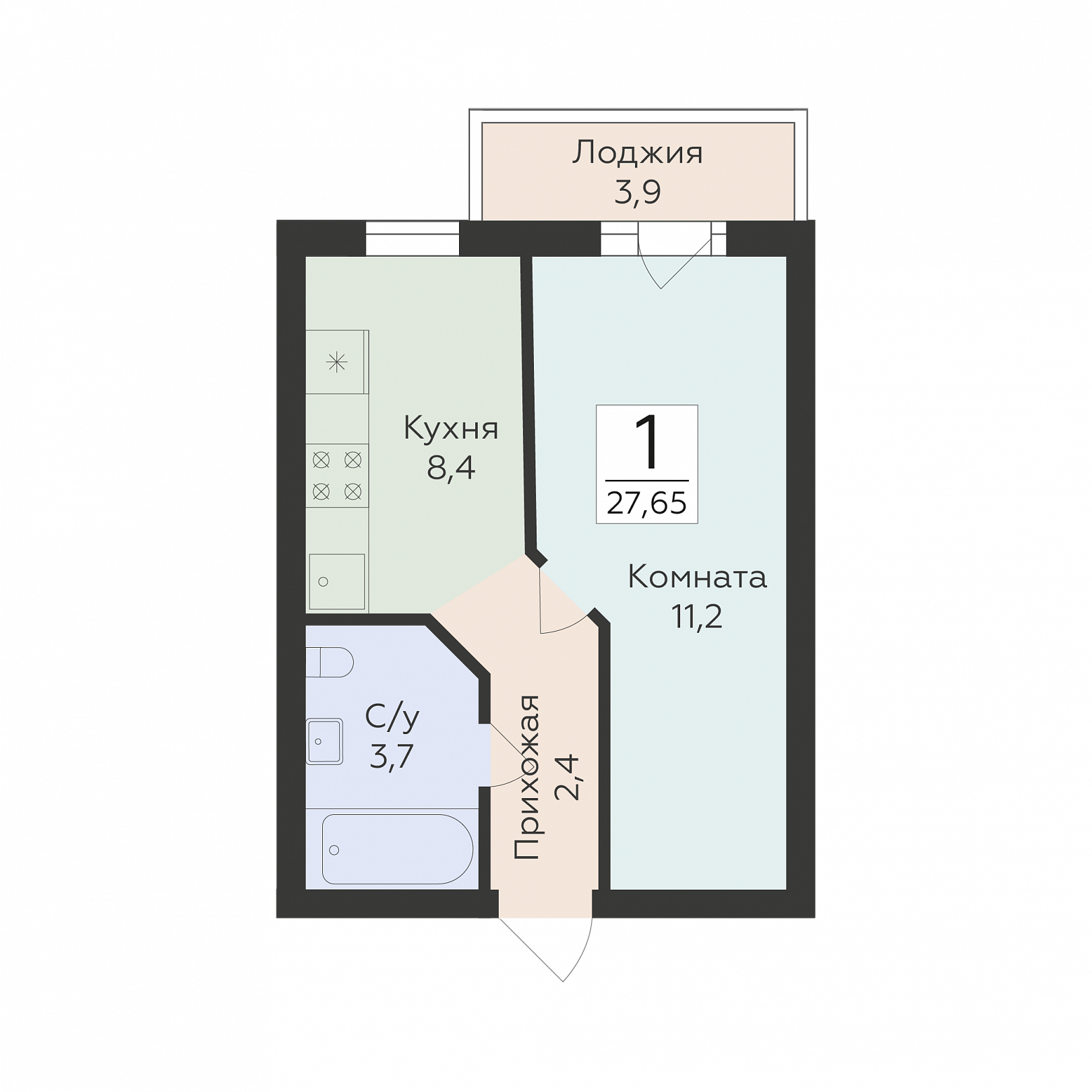 1-комнатная квартира, 27.65 м2, 12 этаж, №246, Классики