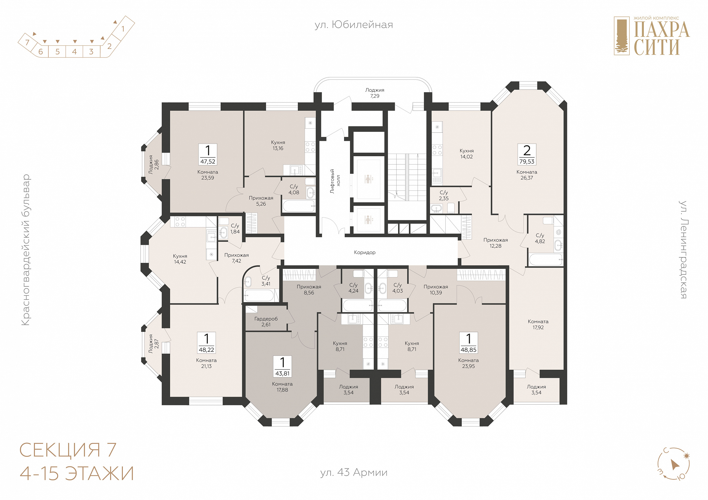 2-комнатная квартира, 79.53 м2, 13 этаж, №568, Пахра Сити