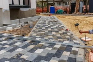 - Выложена тротуарная плитка на 40%.