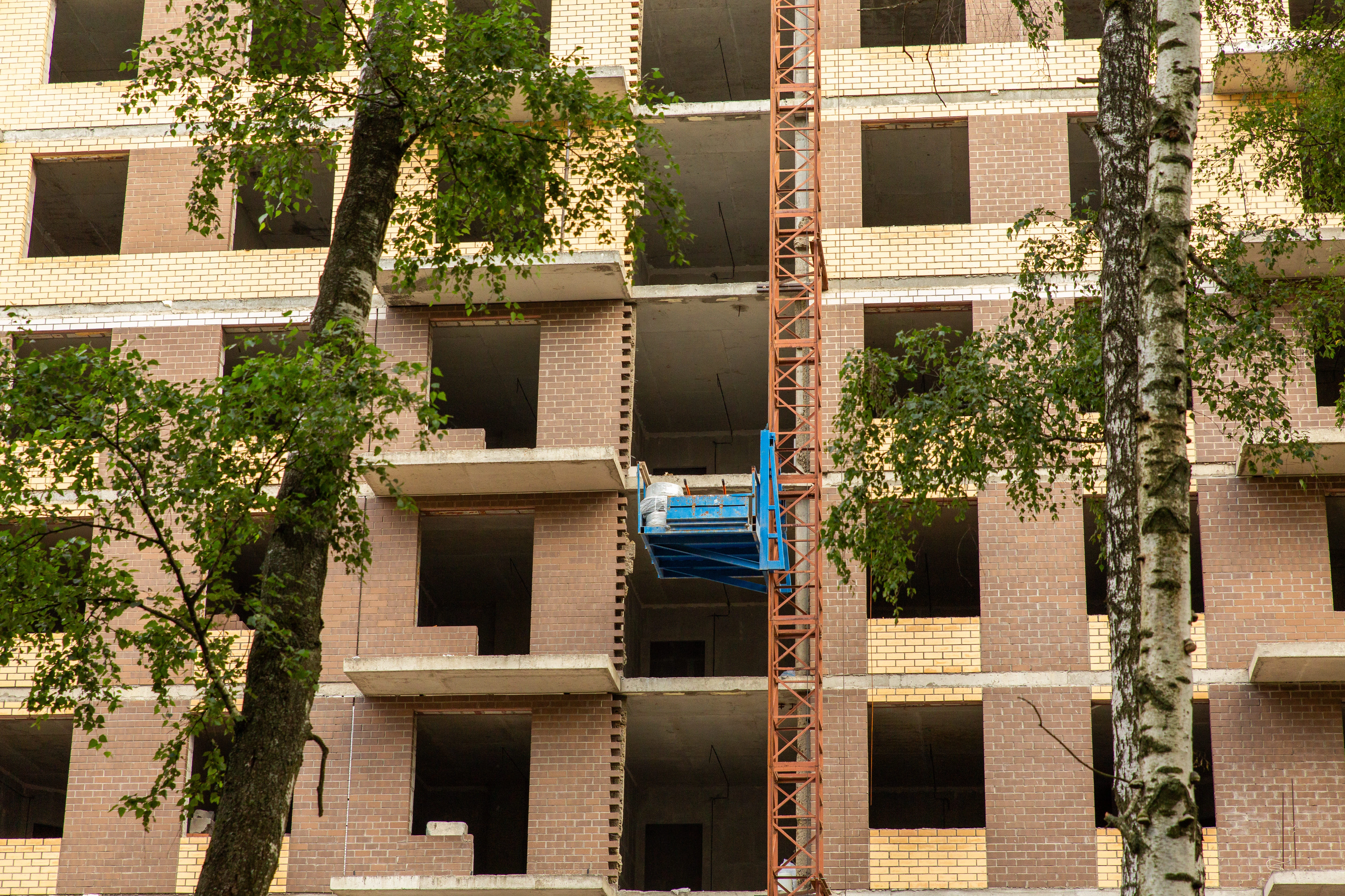 - Ведутся работы по лицевой кладке наружных стен в корпусе 202