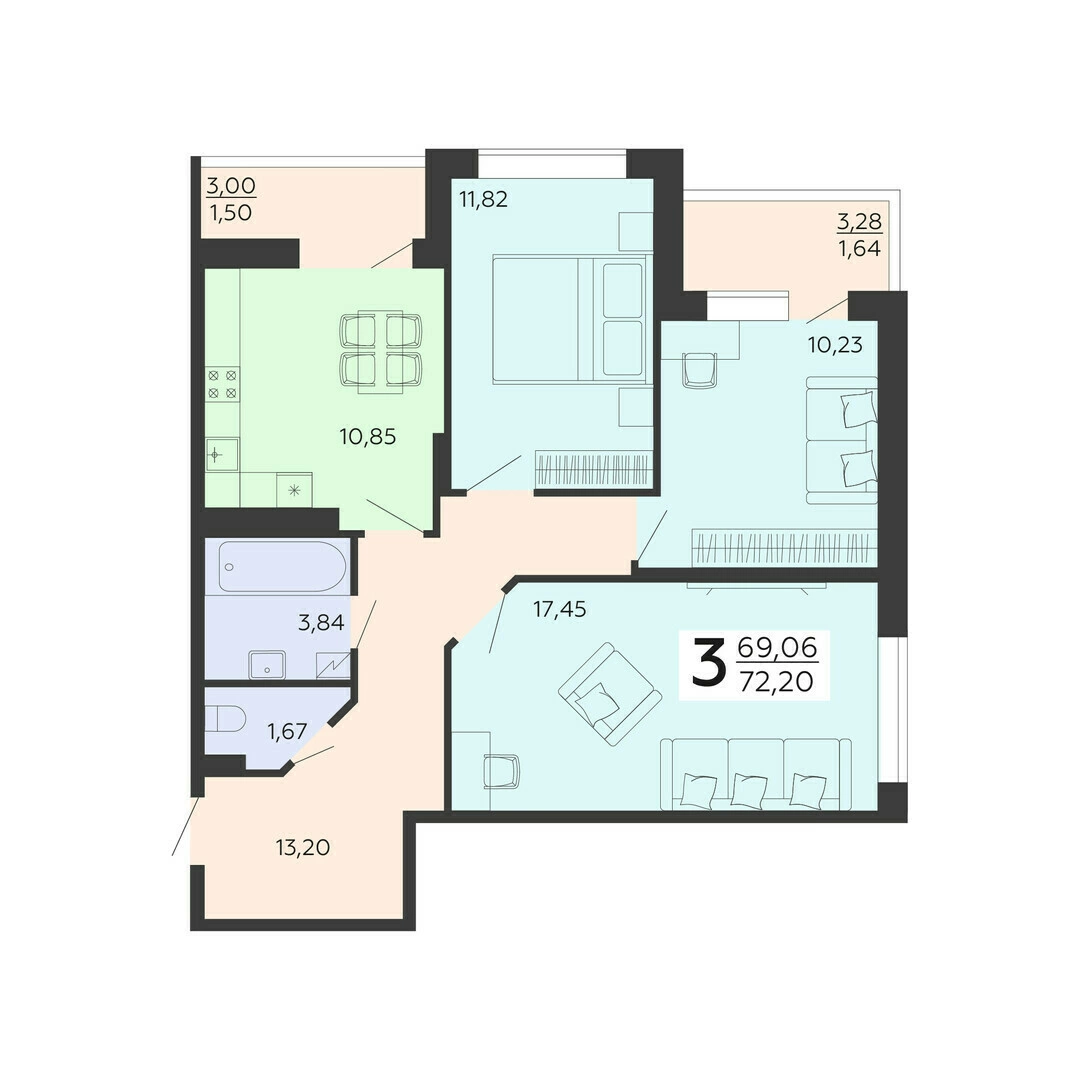 • 3-комнатная квартира от 8,6 млн ₽