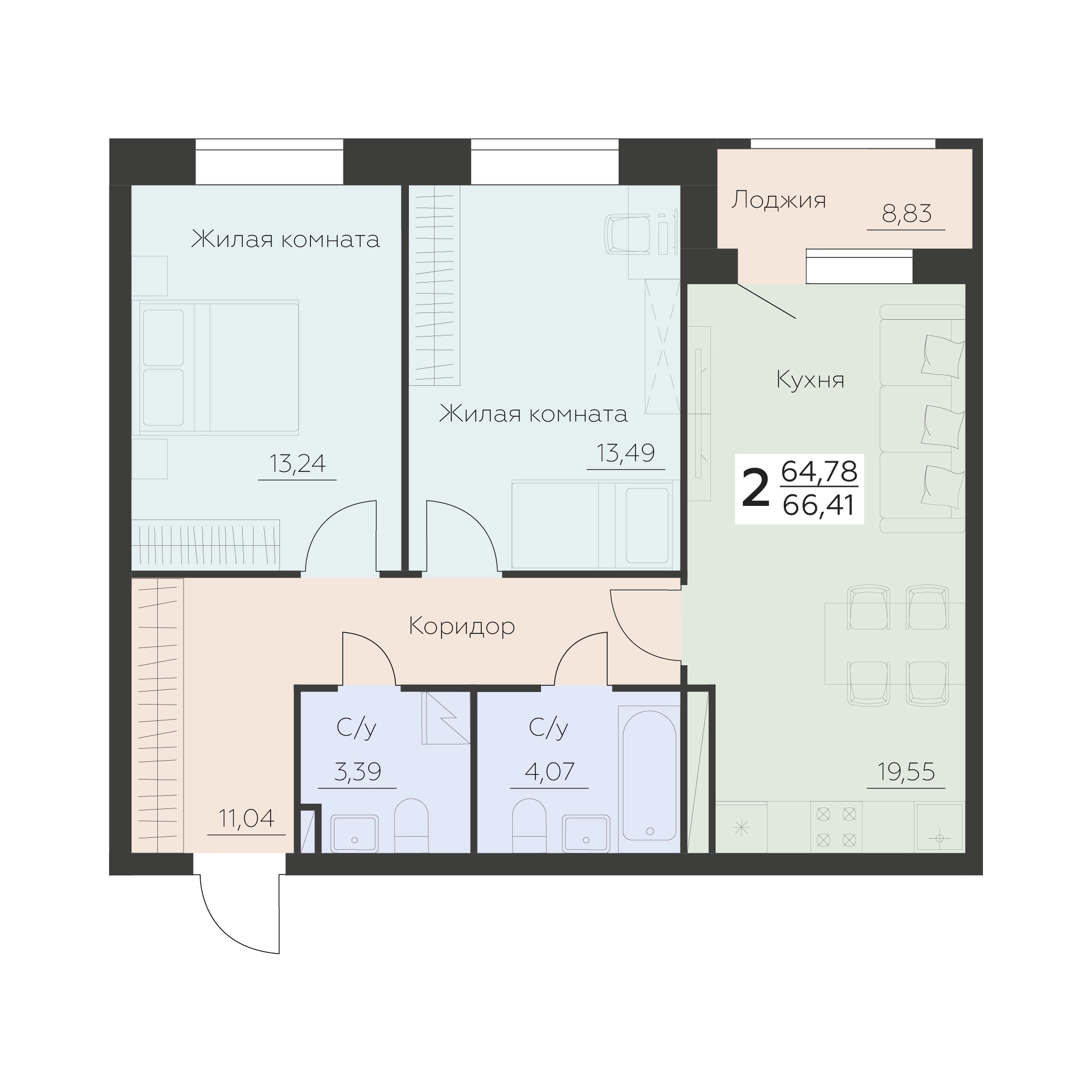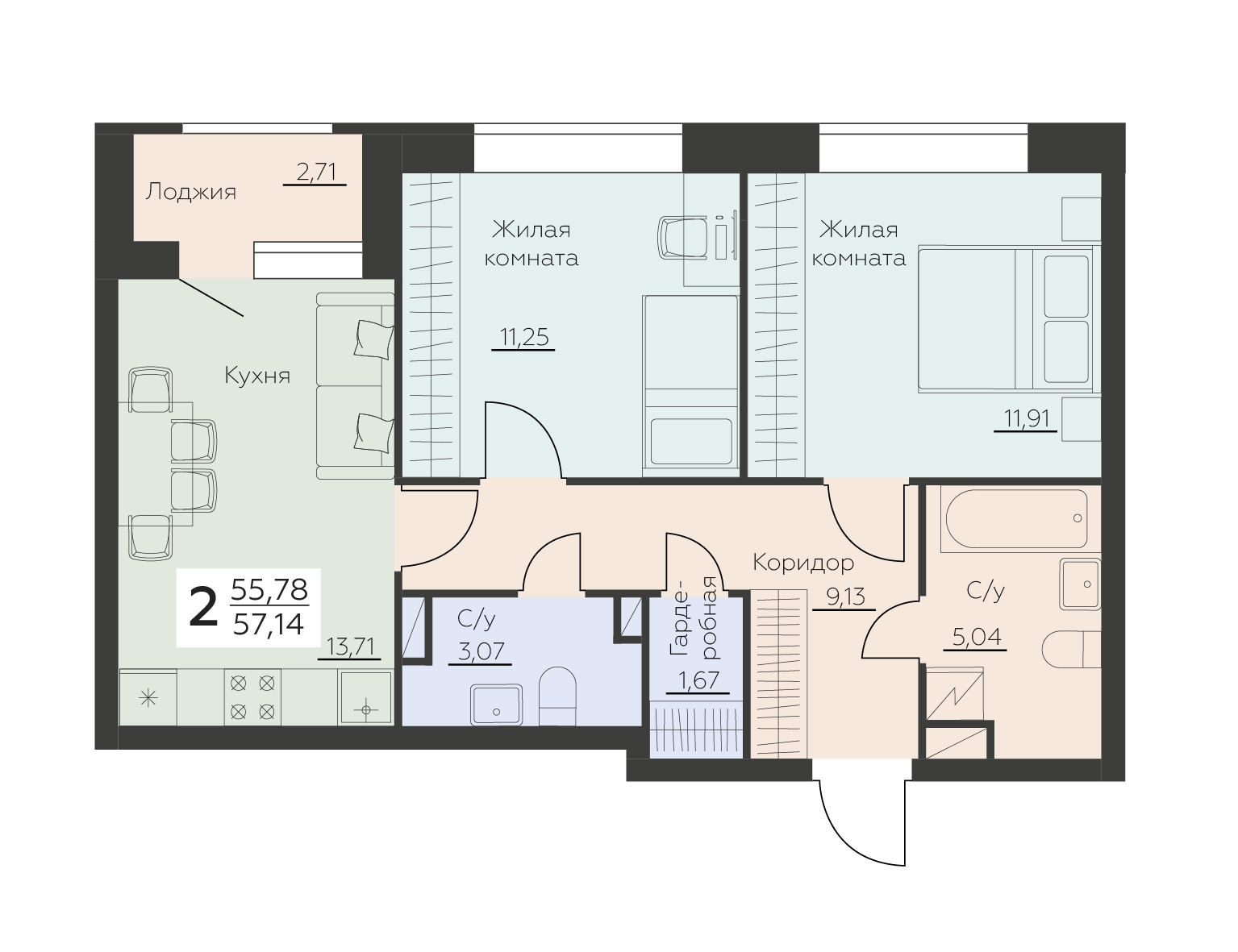 Для тех, кто точно знает чего хочет! Минимум производимых работ, которые выполняет застройщик. Данный вариант позволит Вам воплотить все свои самые смелые фантазии перепланировок и дизайнерских задумок.
