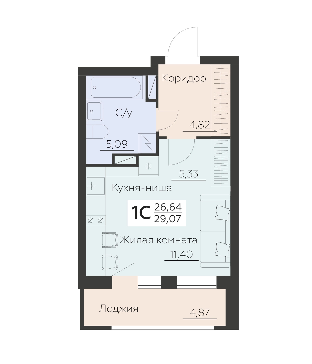 - Отсутствие стояков отопления поможет установить мебель и элементы декора по своему усмотрению.