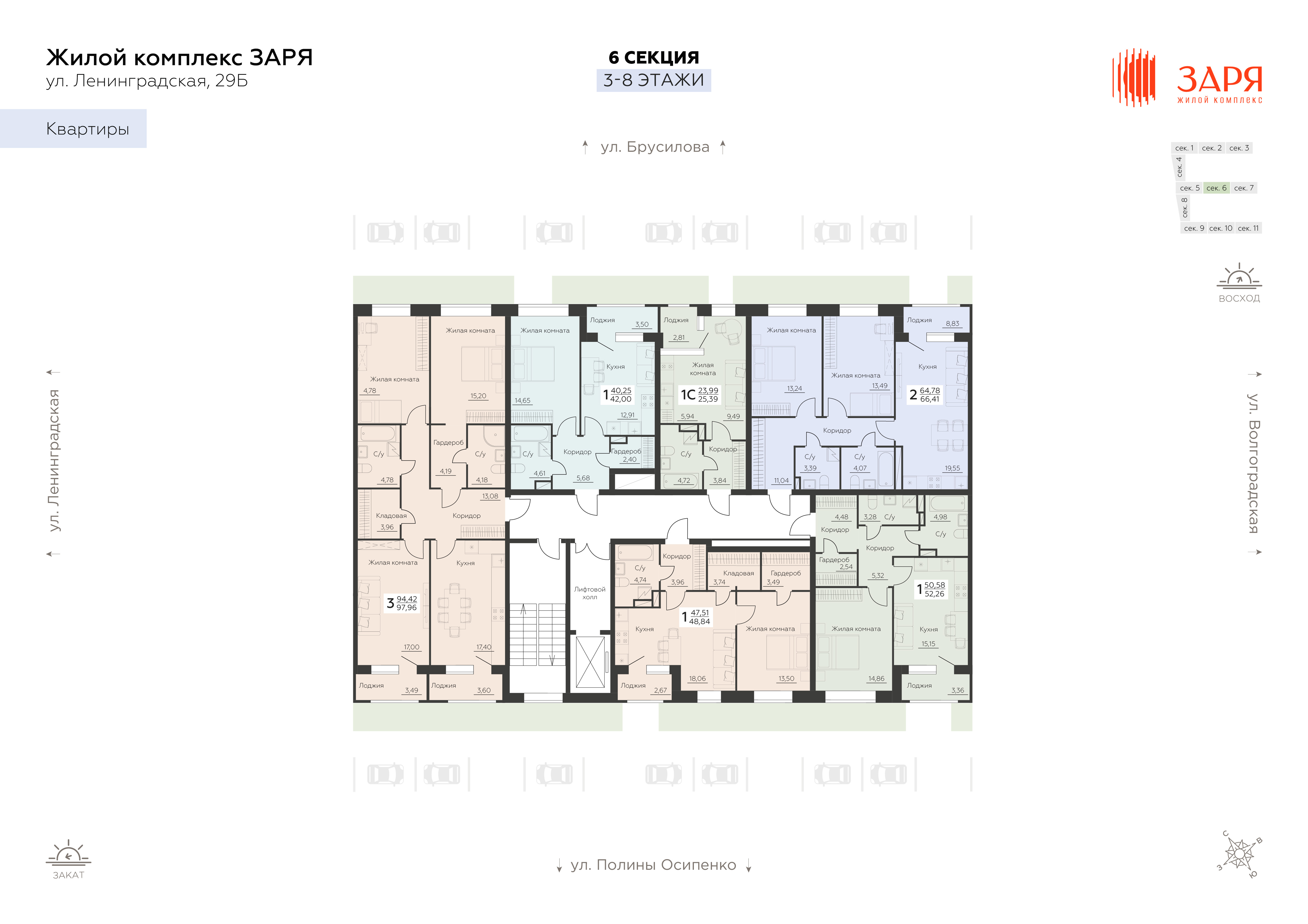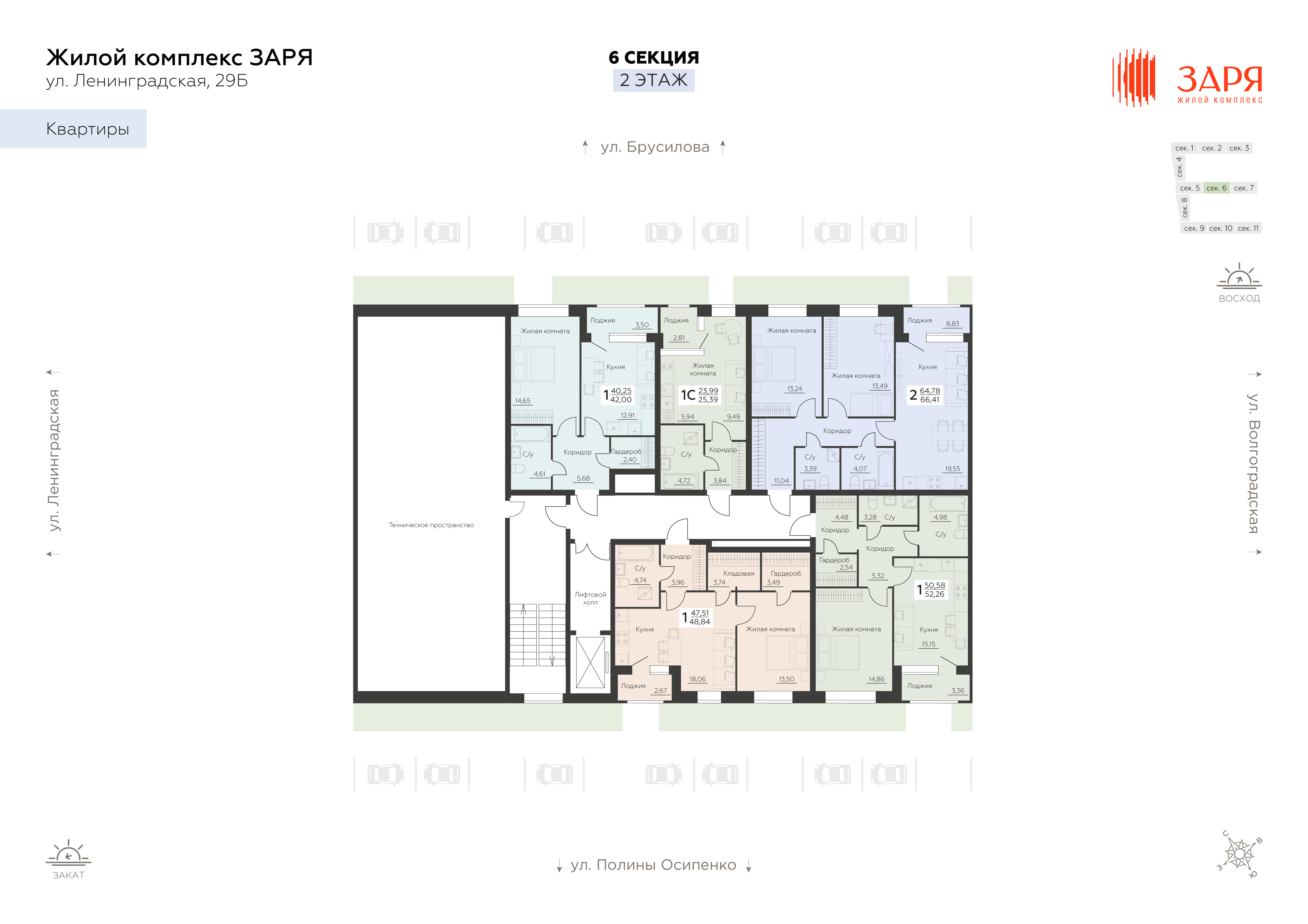 Жилой Комплекс "Заря" — это стильный, комфортный и современный проект с уникальной для Воронежа инфраструктурой. Между зданиями уютно расположится приватный благоустроенный двор-патио — мини оазис с пешеходными дорожками. Все это дополнит неординарная архитектура, а именно сочетание модернизма с элементами ар-деко, что подчеркнет яркую индивидуальность проекта.