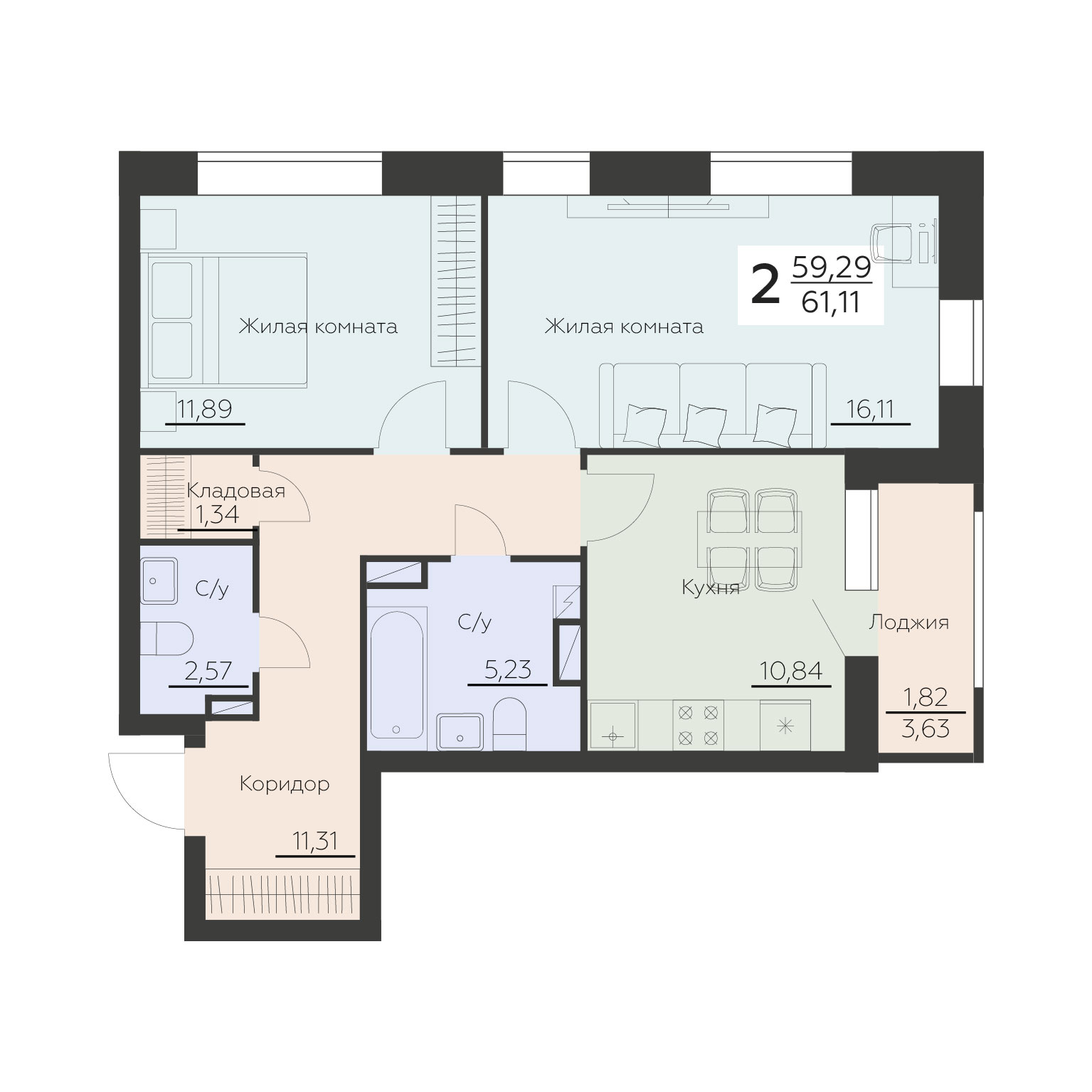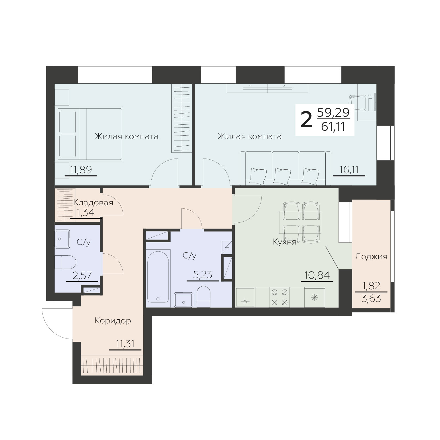 В такой квартире под ключ с чистовым ремонтом достаточно просто расставить мебель - всё остальное мы уже сделали за вас!