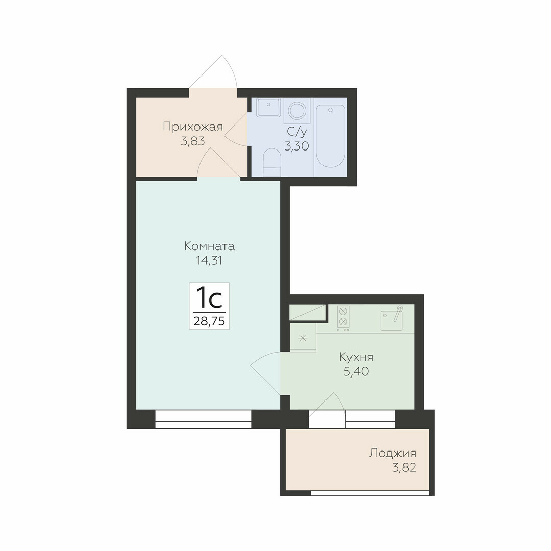 - Покрытие пола в комнатах, коридоре и кухне исполнено линолеумом светлых тонов с текстурой имитирующей дерево