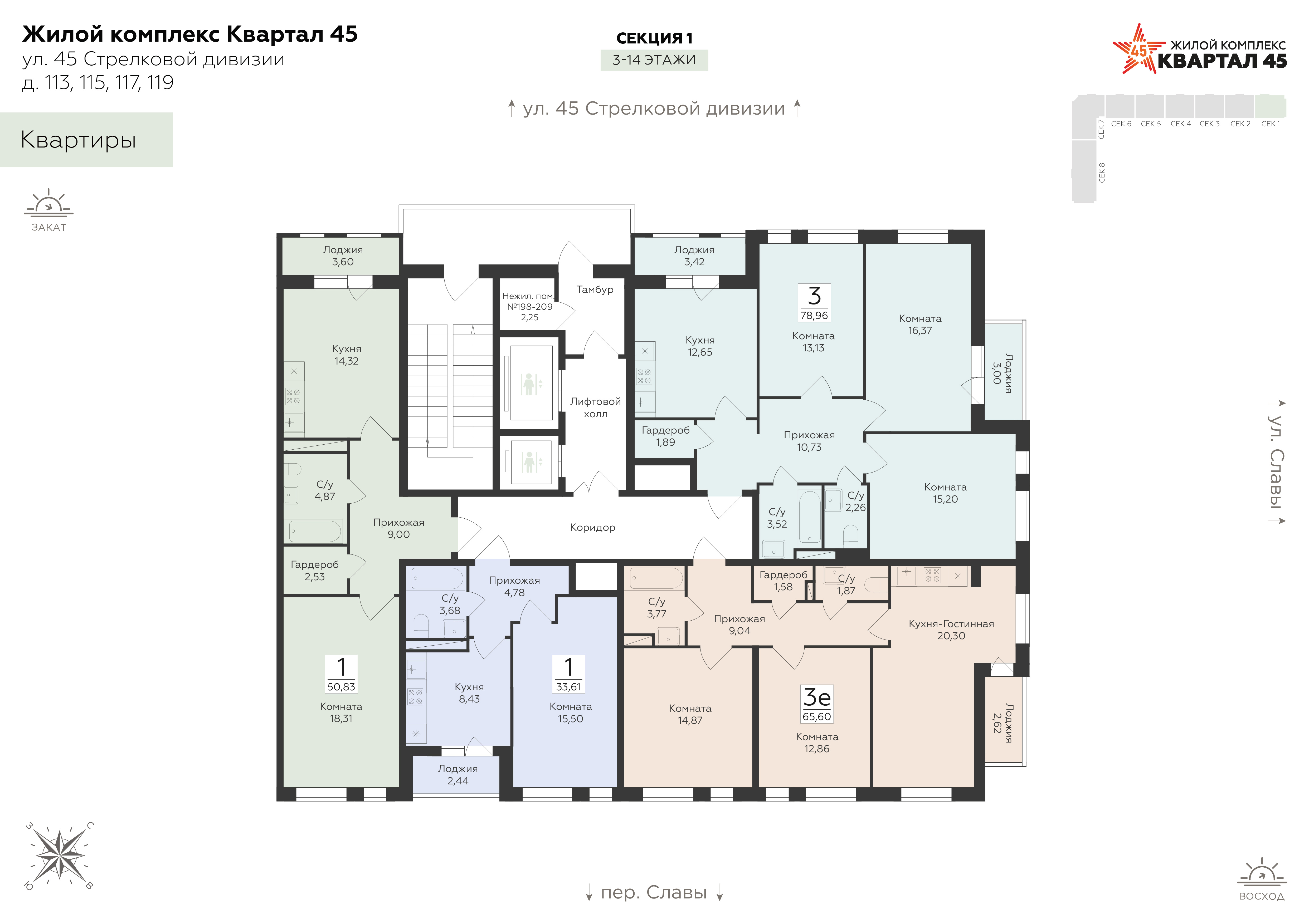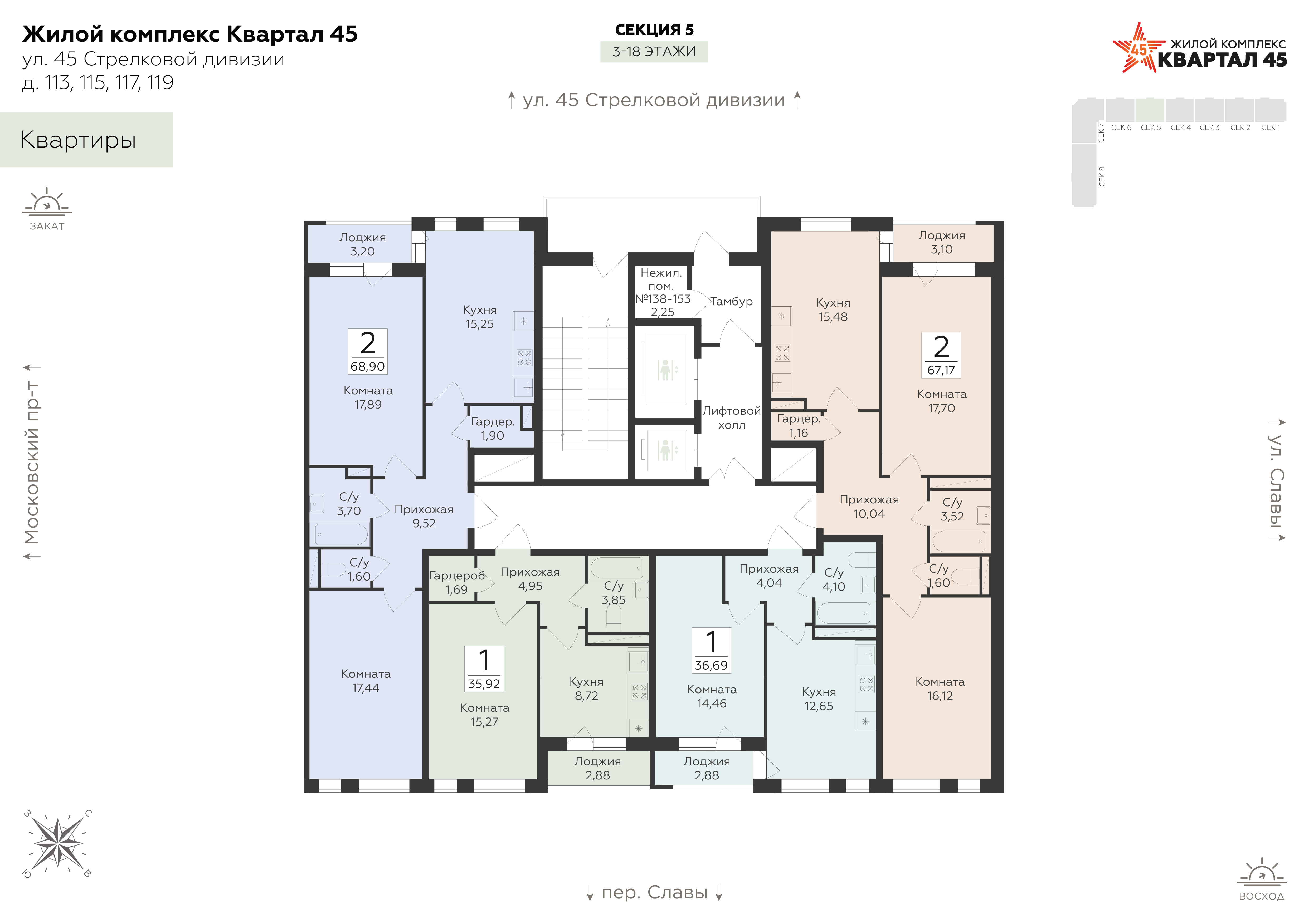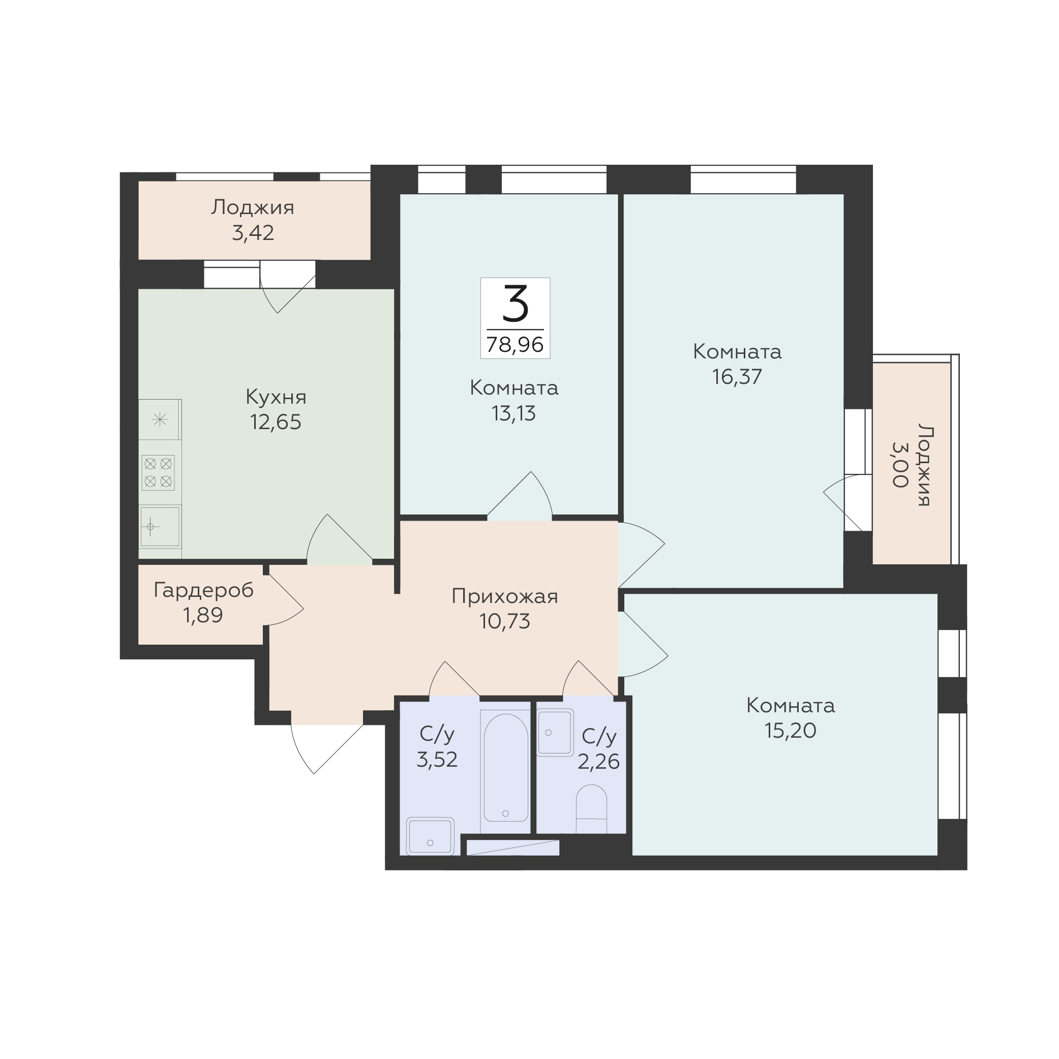 • 3-ком. квартира (Евро) от 9,1 млн ₽