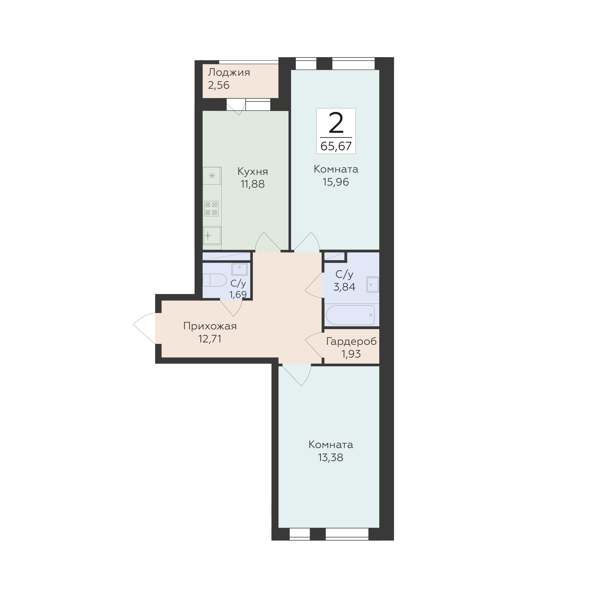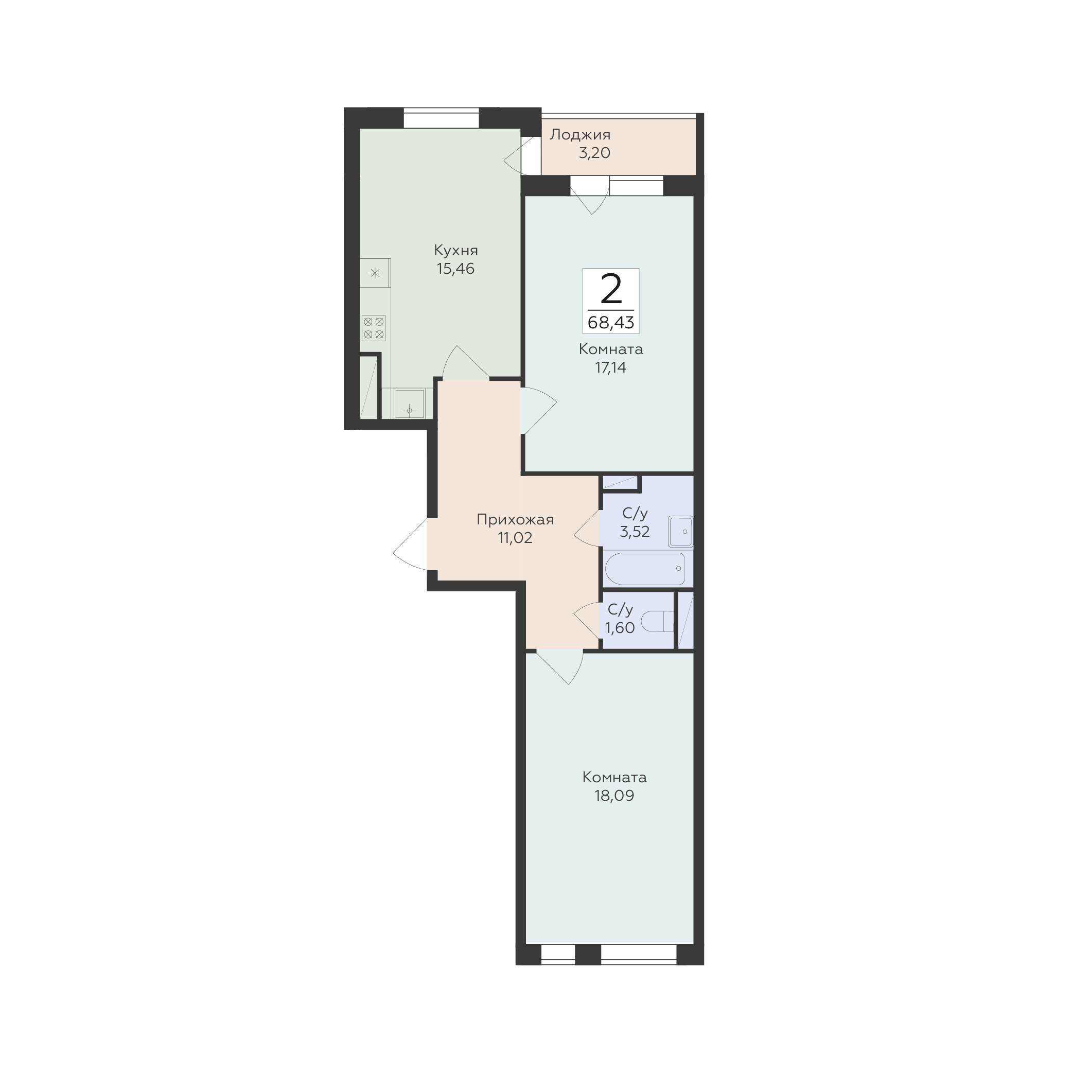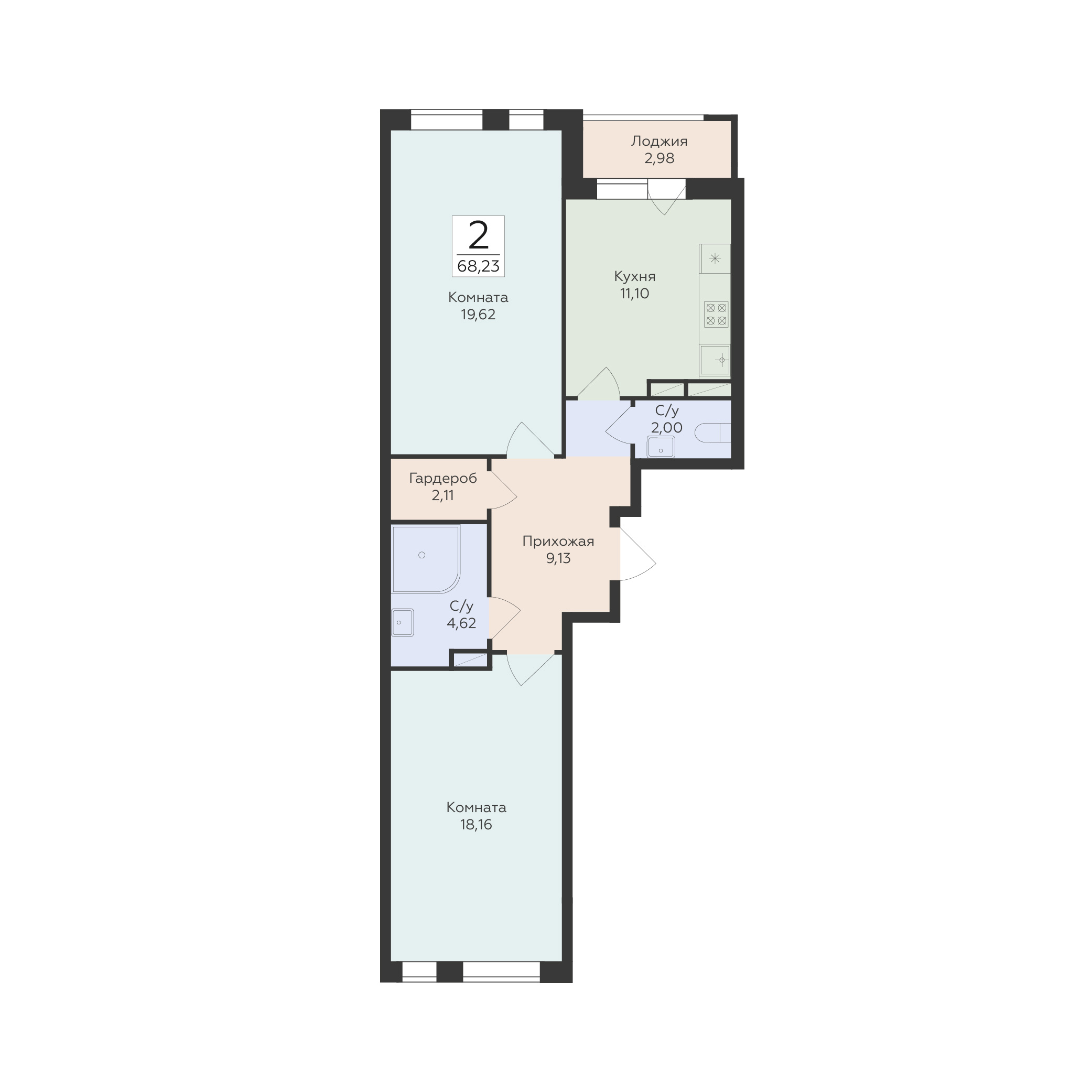 • 2-ком. квартира (Евро) от 6,2 млн ₽