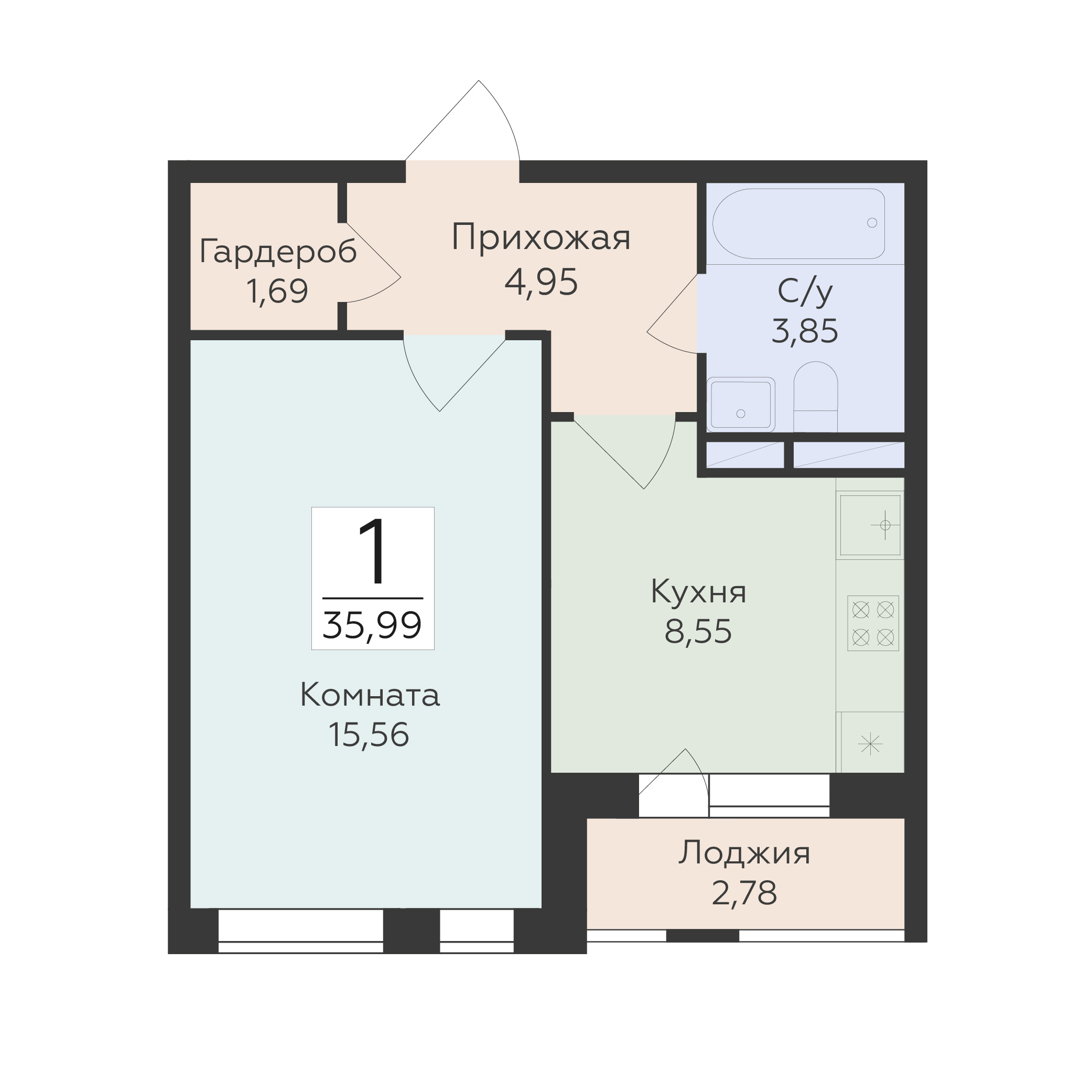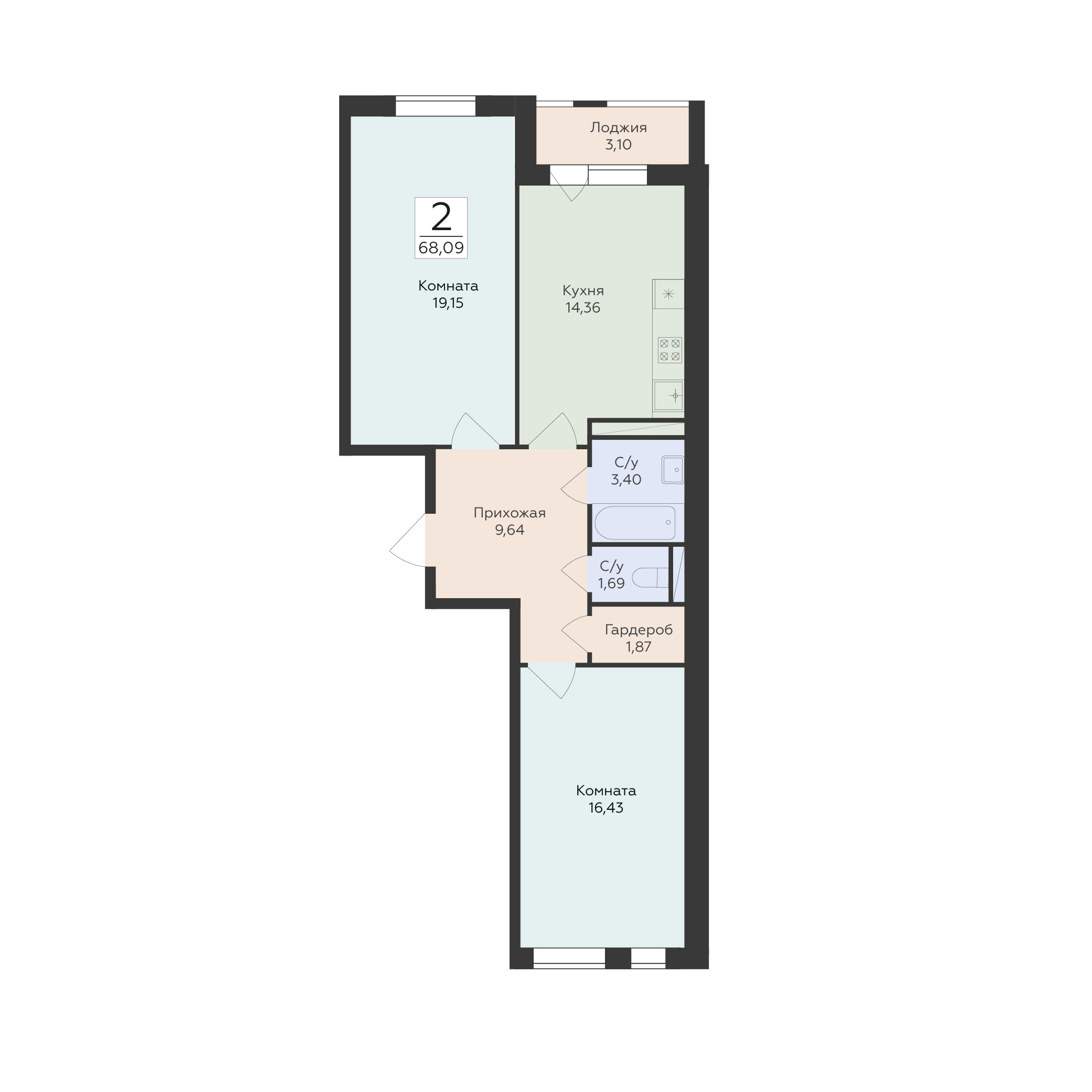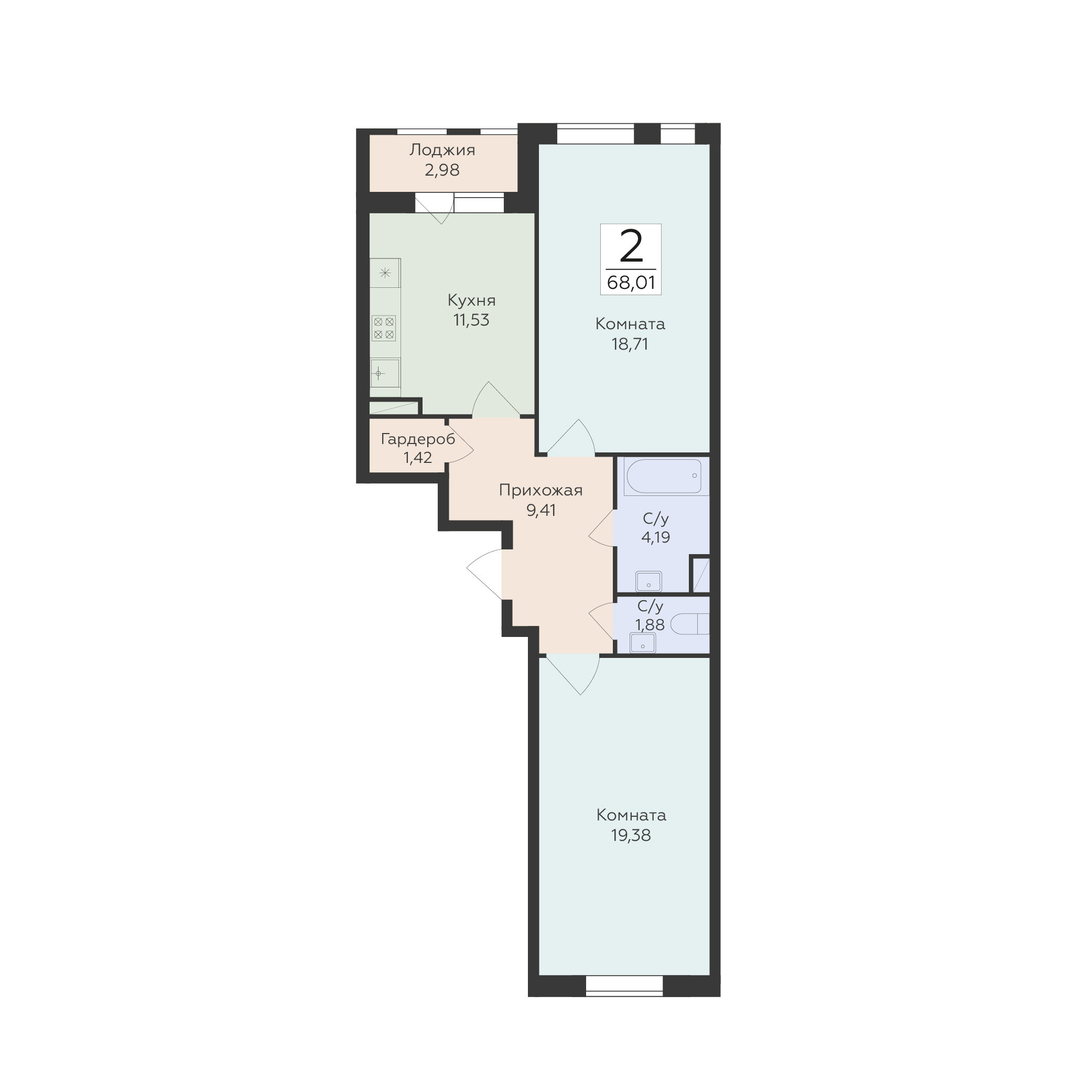• 2-ком. квартира (Евро) от 6,2 млн ₽