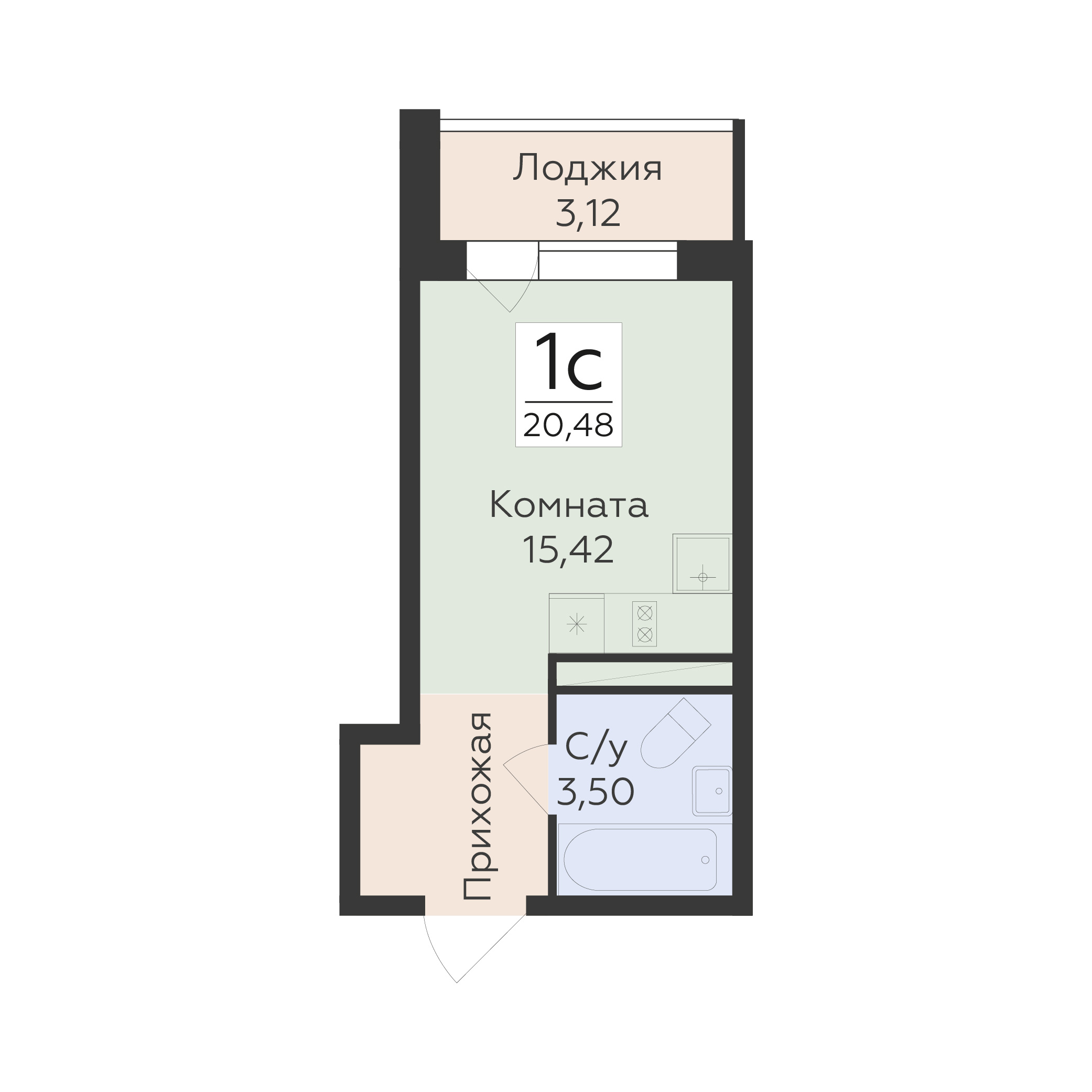 • 1-комнатная (студия) от 3,5 млн ₽