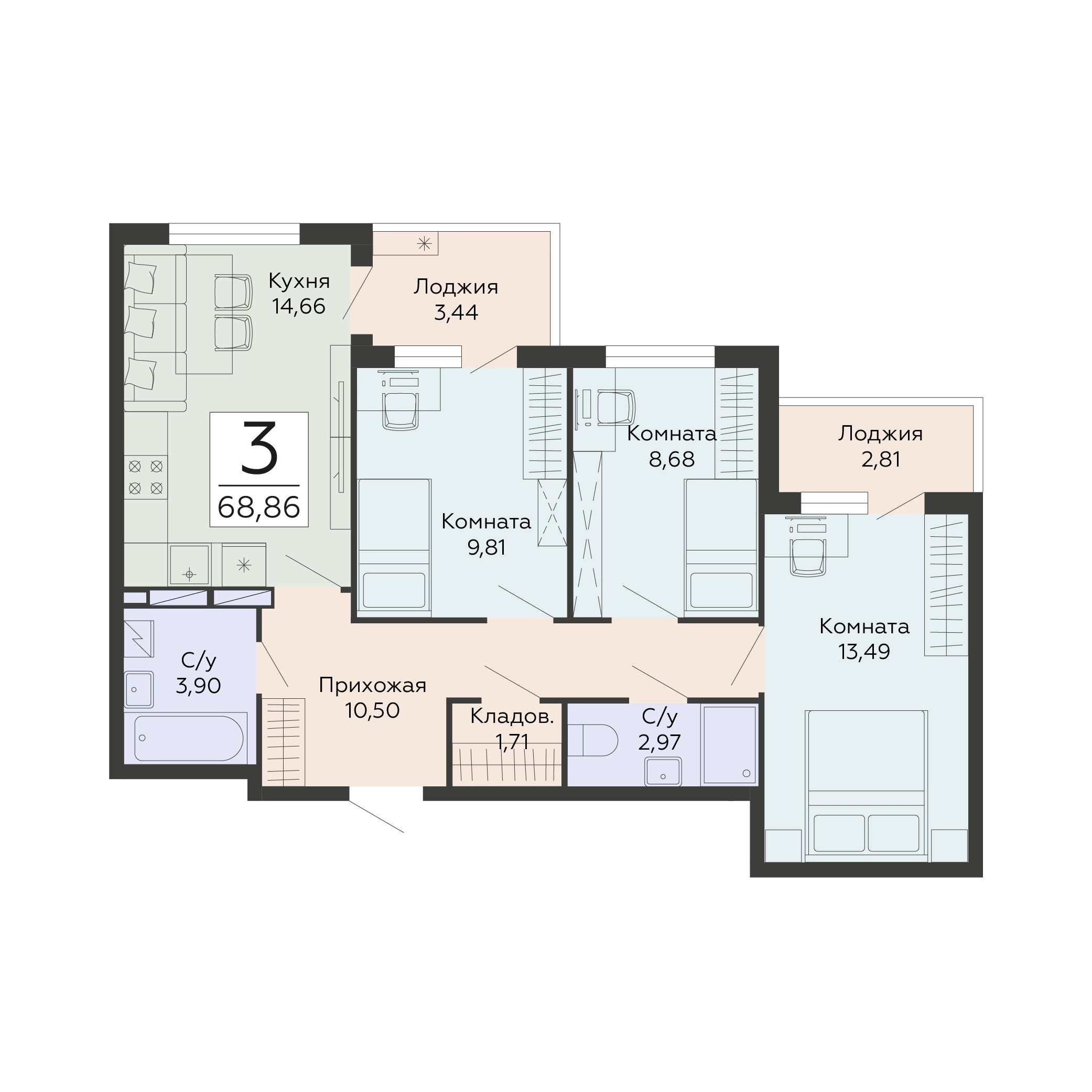 В такой квартире под ключ с чистовым ремонтом достаточно просто расставить мебель - всё остальное мы уже сделали за вас!