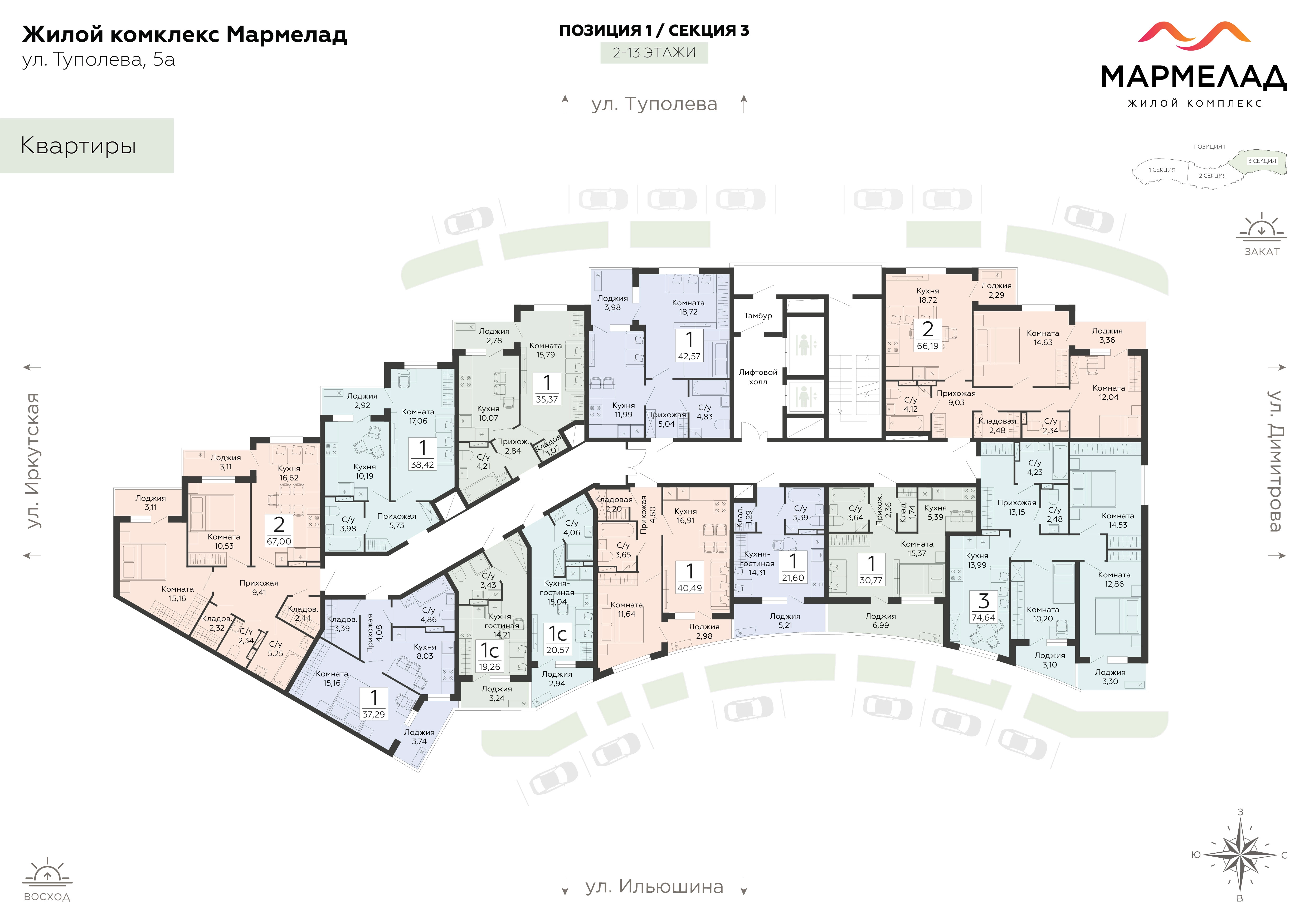 Жилой комплекс «Мармелад» расположен в Левобережном районе города Воронежа на улице улица Туполева. В пешей доступности – всё для насыщенной жизни. Современный проект комфорт-класса ориентирован на создание максимально комфортной среды для своих жителей. Центром притяжения всего комплекса станет площадь с оригинальным фонтаном, вокруг которой будет организована пешеходная зона со скамейками, клумбами и цветниками.