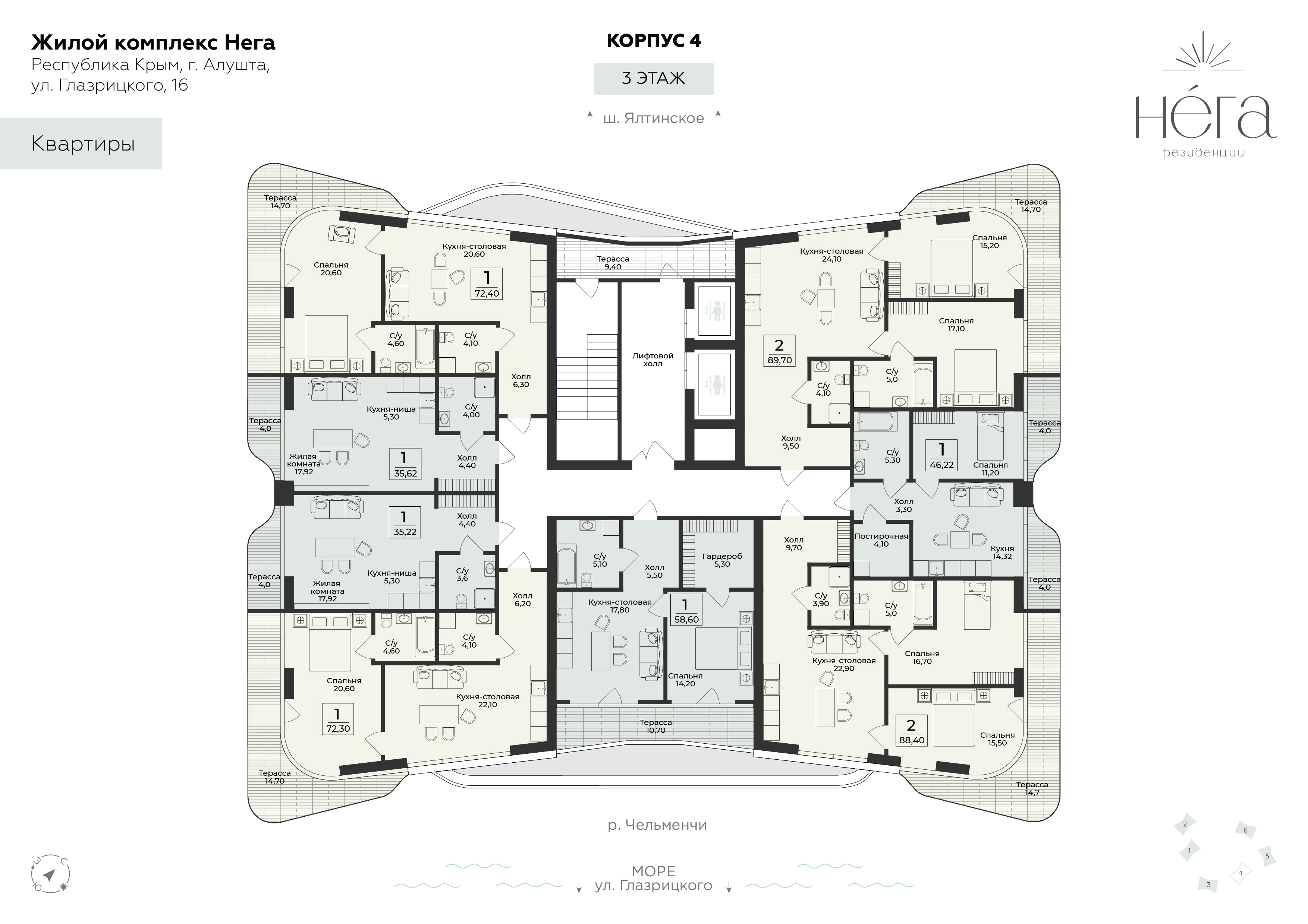 «Нега» – тихая природная роскошь в городской среде. Премиальный жилой комплекс возводится в уединенной части Алушты, в самом престижном районе курорта – Профессорском уголке, неподалеку от самой протяженной набережной Крыма, где снимался фильм «Кавказская пленница». Комплекс окружен многовековым хвойным лесом, вековыми кедрами, стройными кипарисами и редкими реликтовыми растениями.