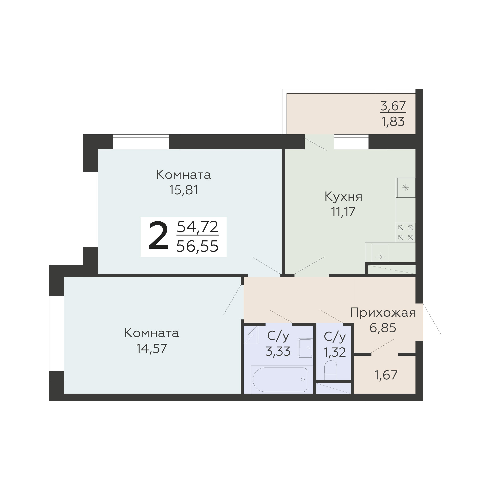 • 2-ком. квартира (Евро) от 4,7 млн ₽
