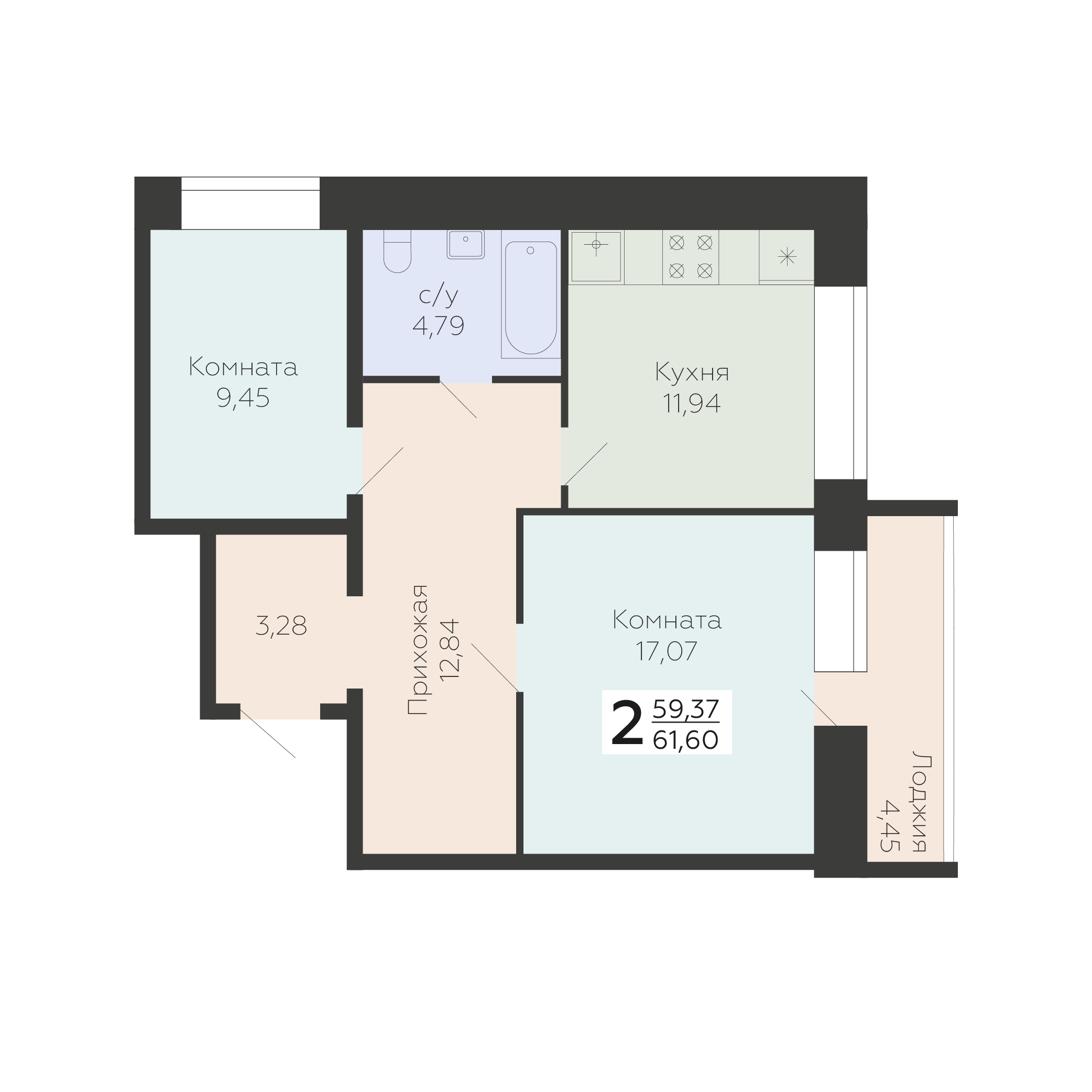 61.6 м2
