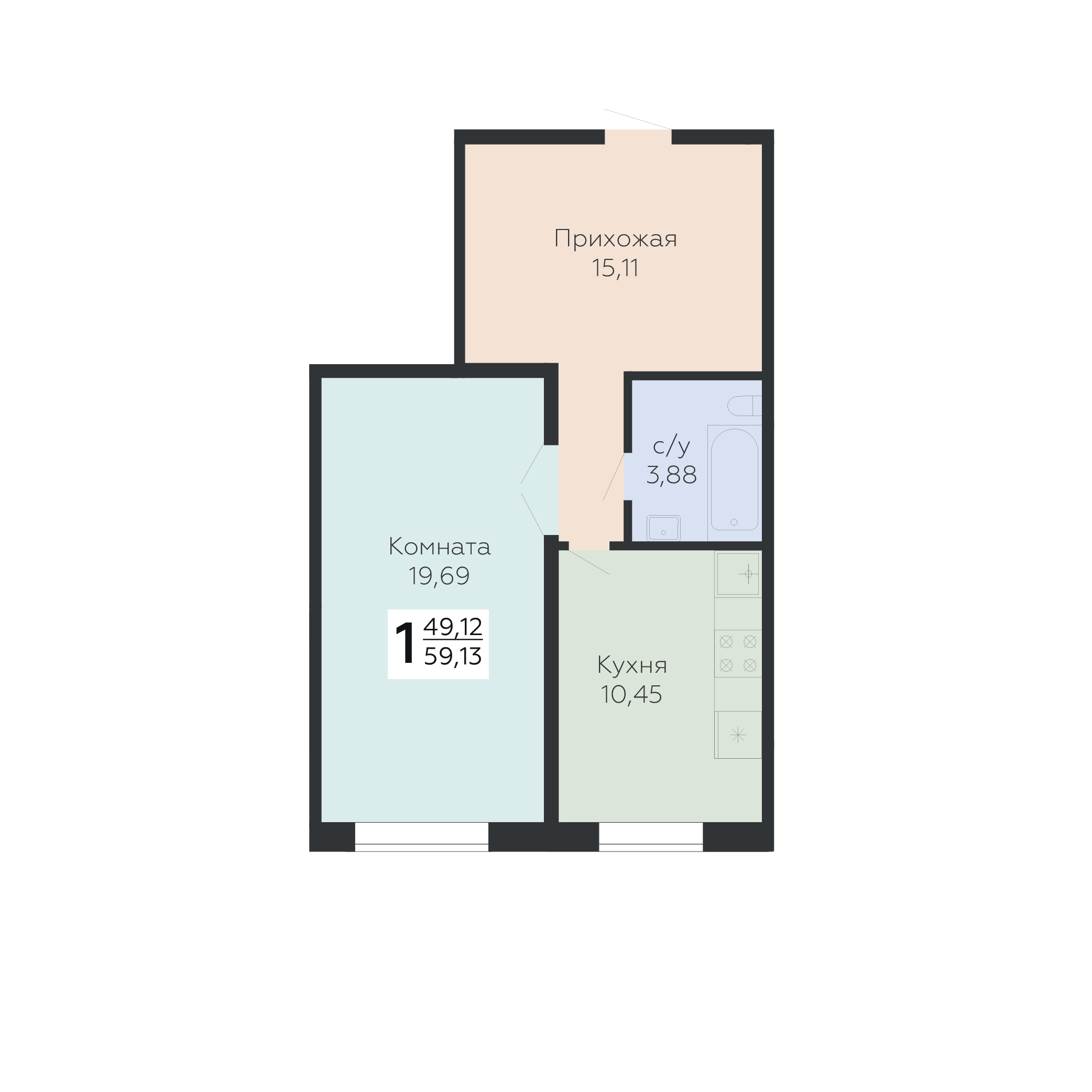 • 1-комнатная квартира от 5,9 млн ₽