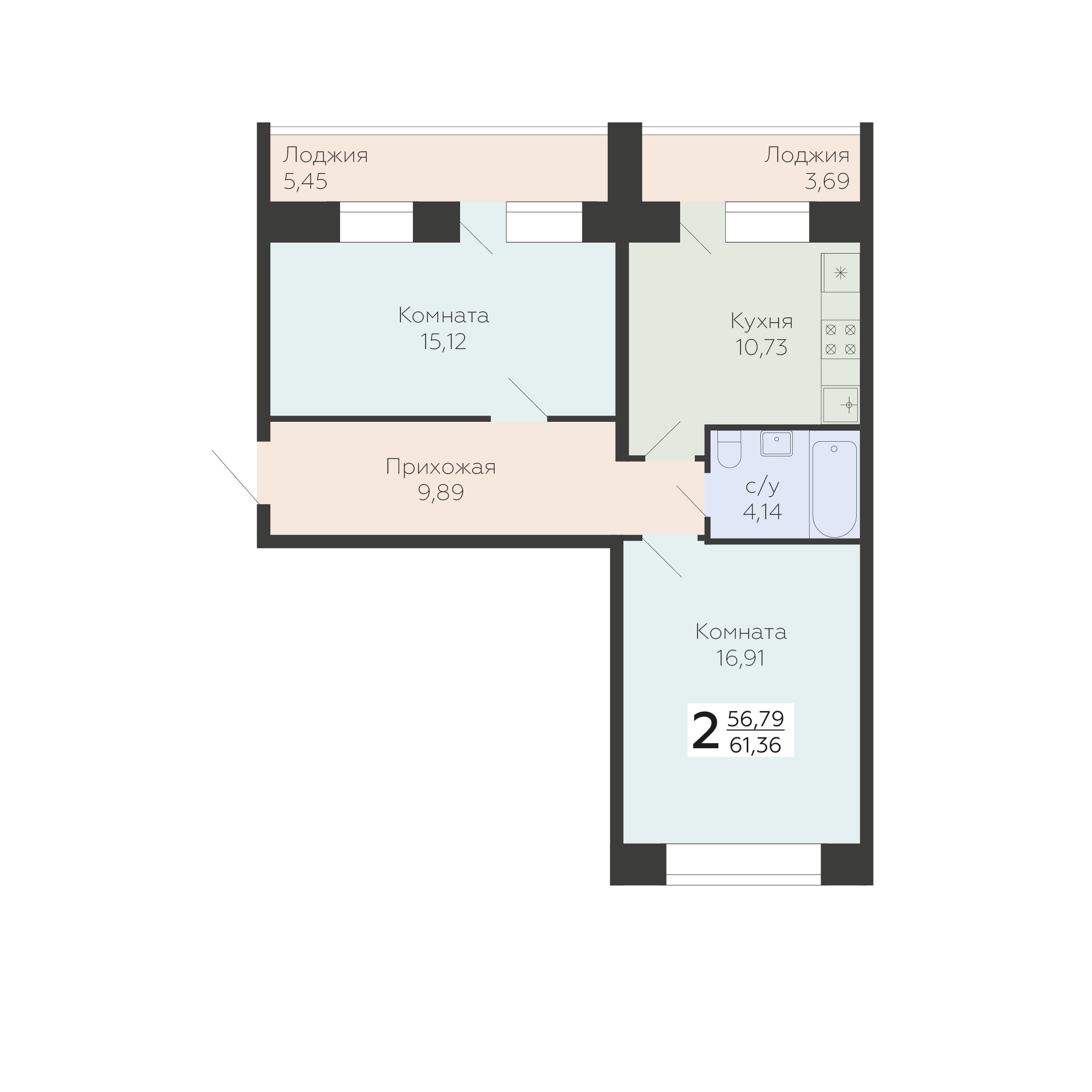 • 2-комнатная квартира от 9,4 млн ₽