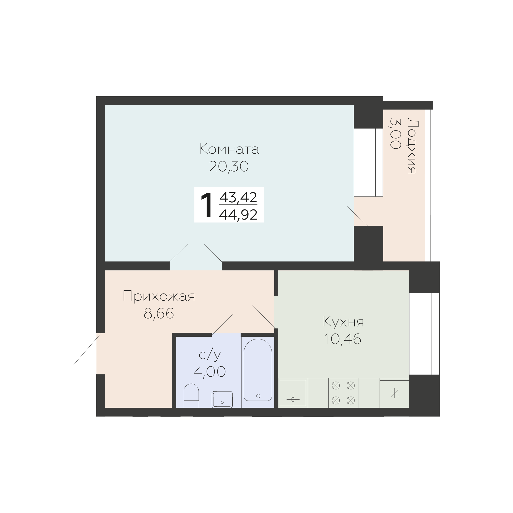 42.97 м2