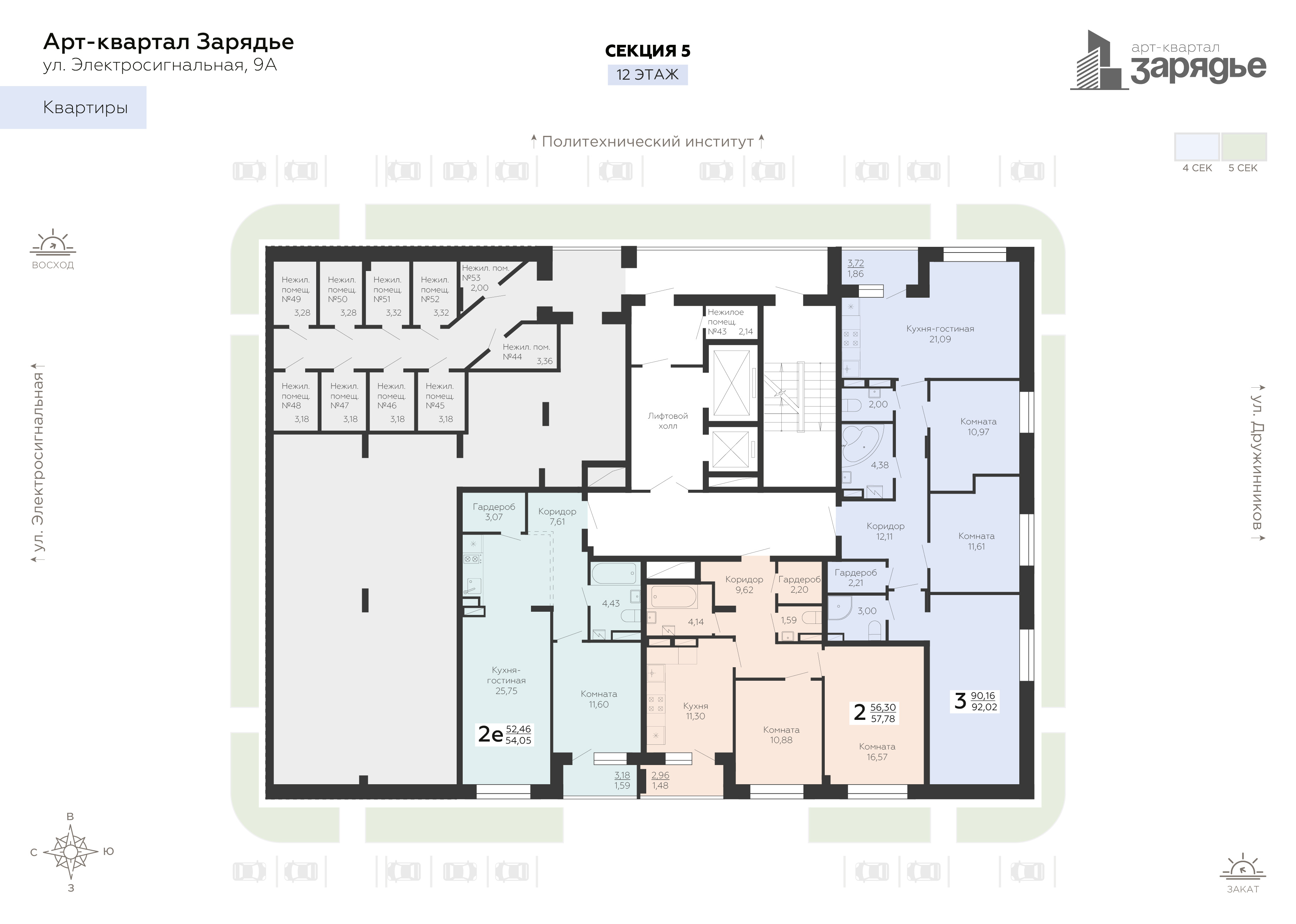 «Зарядье» - это новый микрорайон, который расположен на пересечении улиц Электросигнальной и Дружинников, в 5 минутах ходьбы от остановки Политехнический институт. Арт-квартал возводится в тихой части Коминтерновского района рядом с крупнейшей городской артерией - Московский проспект. Благодаря своему удачному расположению путь до центра города займет всего 10 минут. Помимо транспортной доступности в районе активно развита инфраструктура.