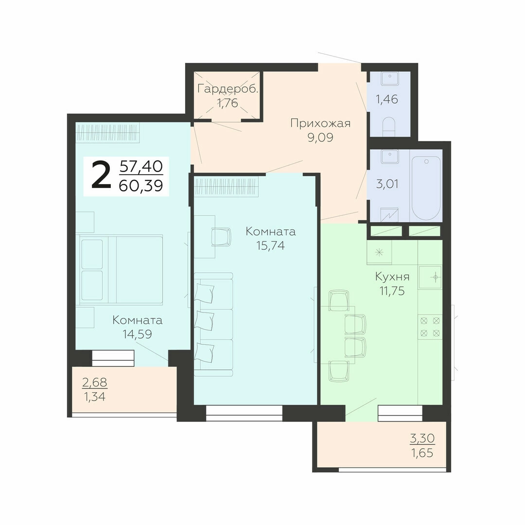 В такой квартире под ключ с чистовым ремонтом достаточно просто расставить мебель - всё остальное мы уже сделали за вас!