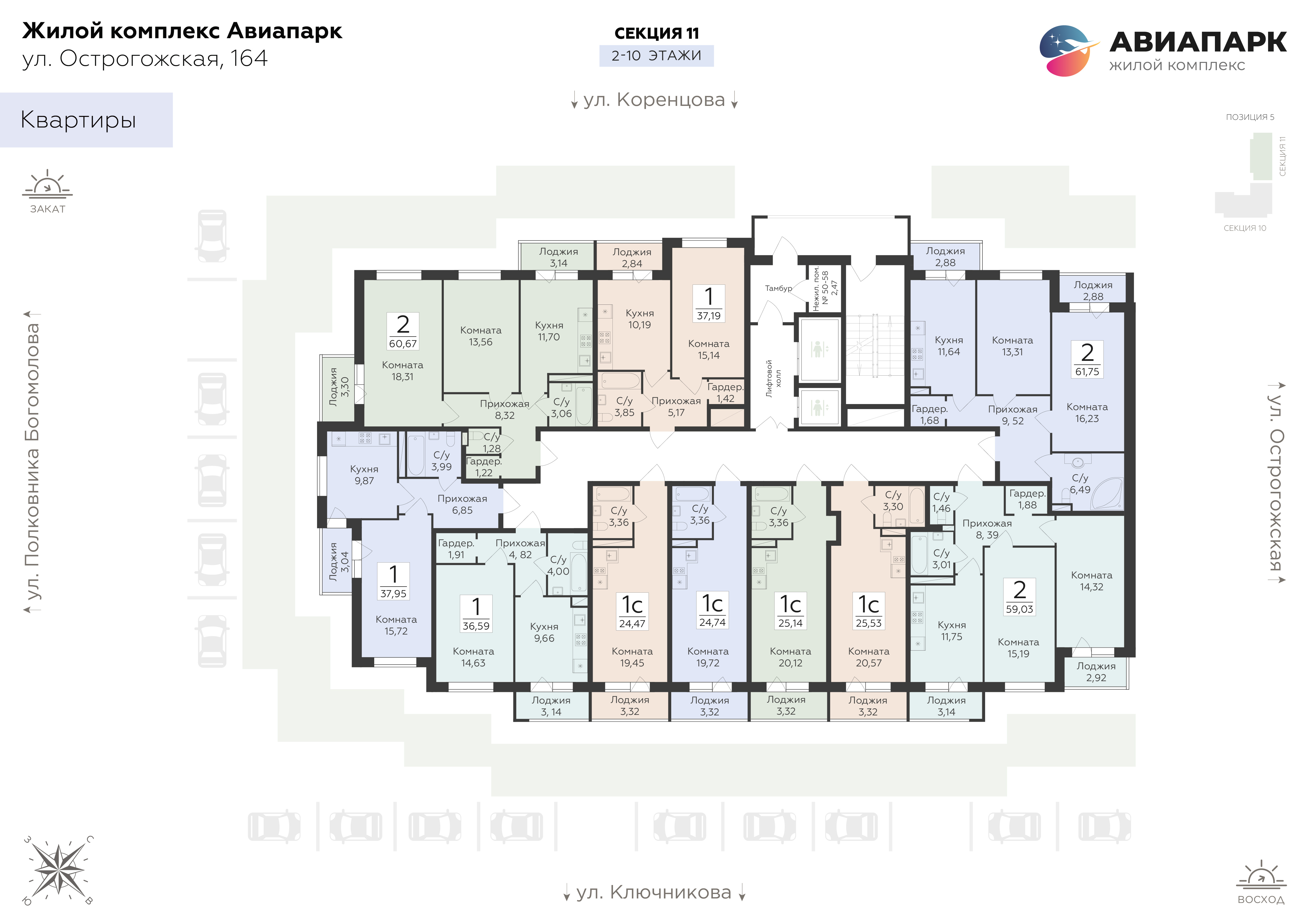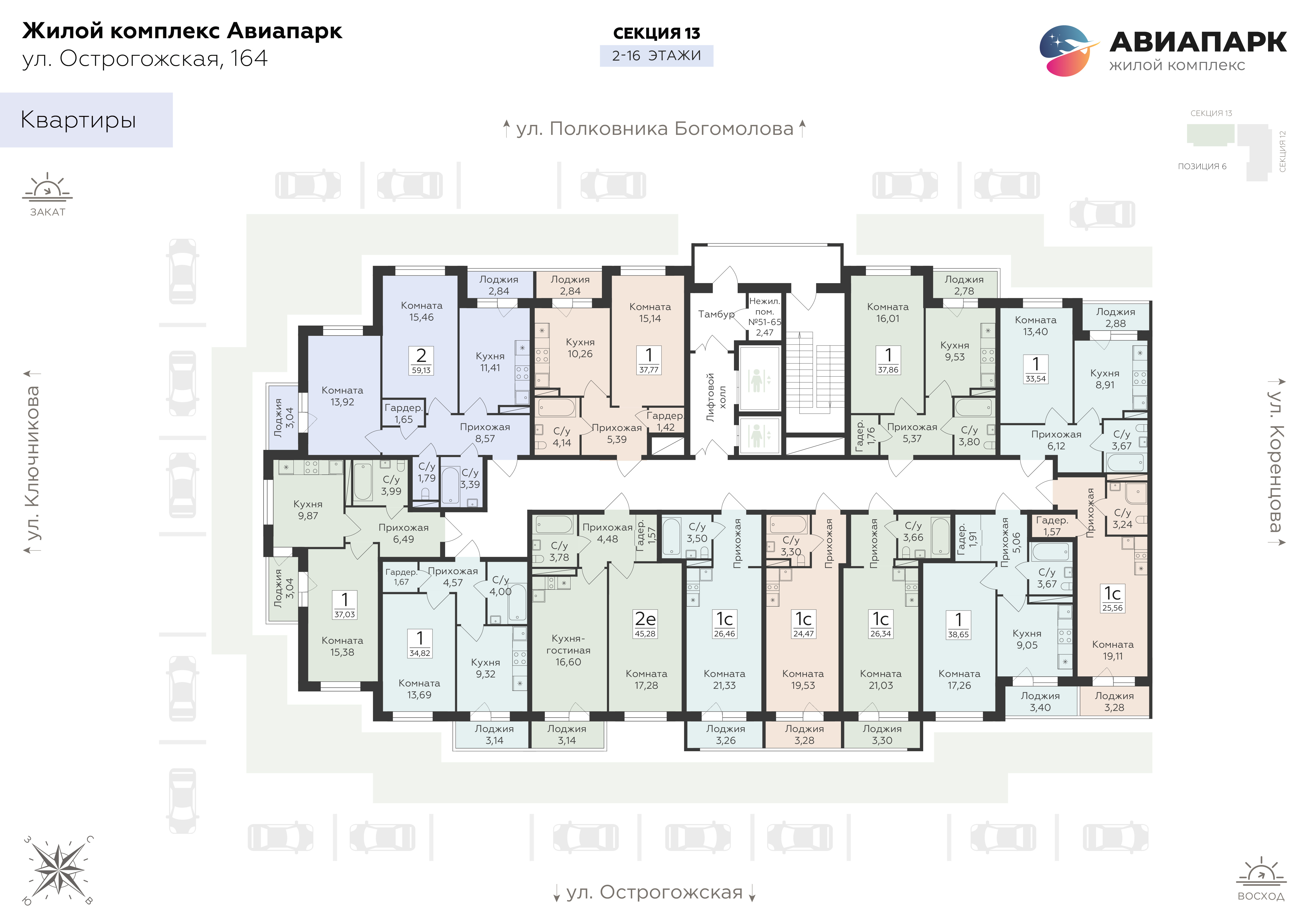 Проектом предусмотрено строительство шести домов переменной этажности: от 10 до 19 этажей.