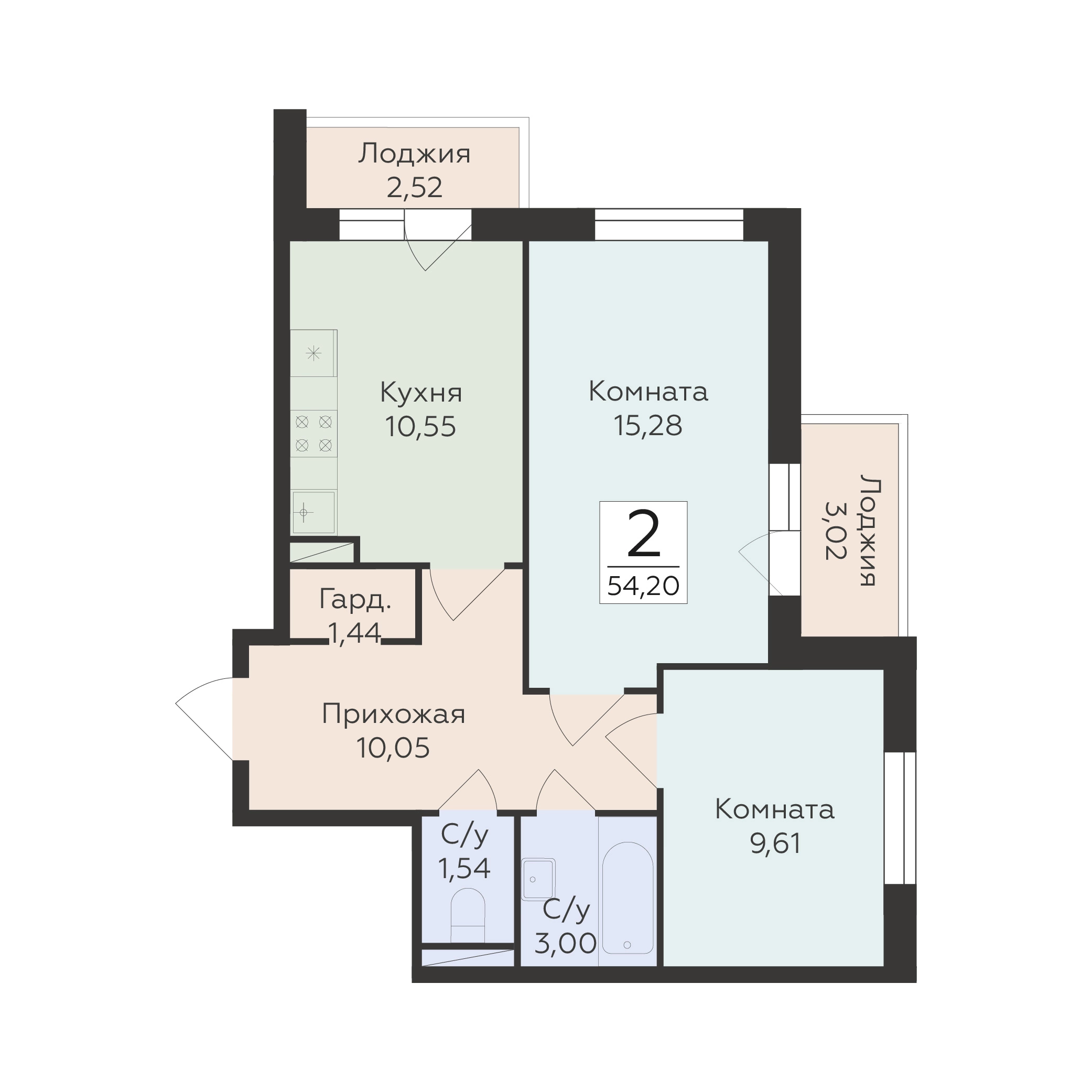 • 2-ком. квартира (Евро) от 4,8 млн ₽